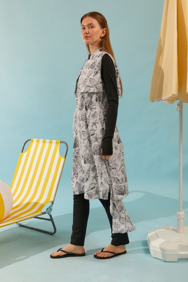 Fermuarlı Yelekli Tesettür Mayo Bebe Mavisi, Yazın enerjisini ve denizin esintisini üzerinizde taşıyacak bu özel tasarım tesettür mayo, hem şık hem de fonksiyonel bir deneyim sunar. Yelek, body, pantolon ve çanta olmak üzer 4 parçadan oluşan mayo takımı, suya dayanıklılığı, hızlı kuruma özelliği ve esnek yapısıyla hareket özgürlüğünüzü kısıtlamadan rahat bir kullanım sağlar. Tesettür giyim hassasiyetine uygun olarak tasarlanmış olup, plaj ve havuz keyfinizi özgürce yaşamanıza olanak tanır.