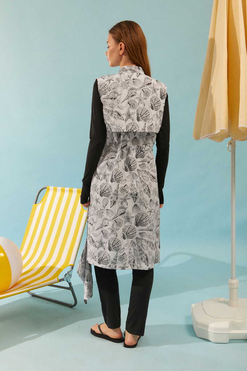 Fermuarlı Yelekli Tesettür Mayo Siyah