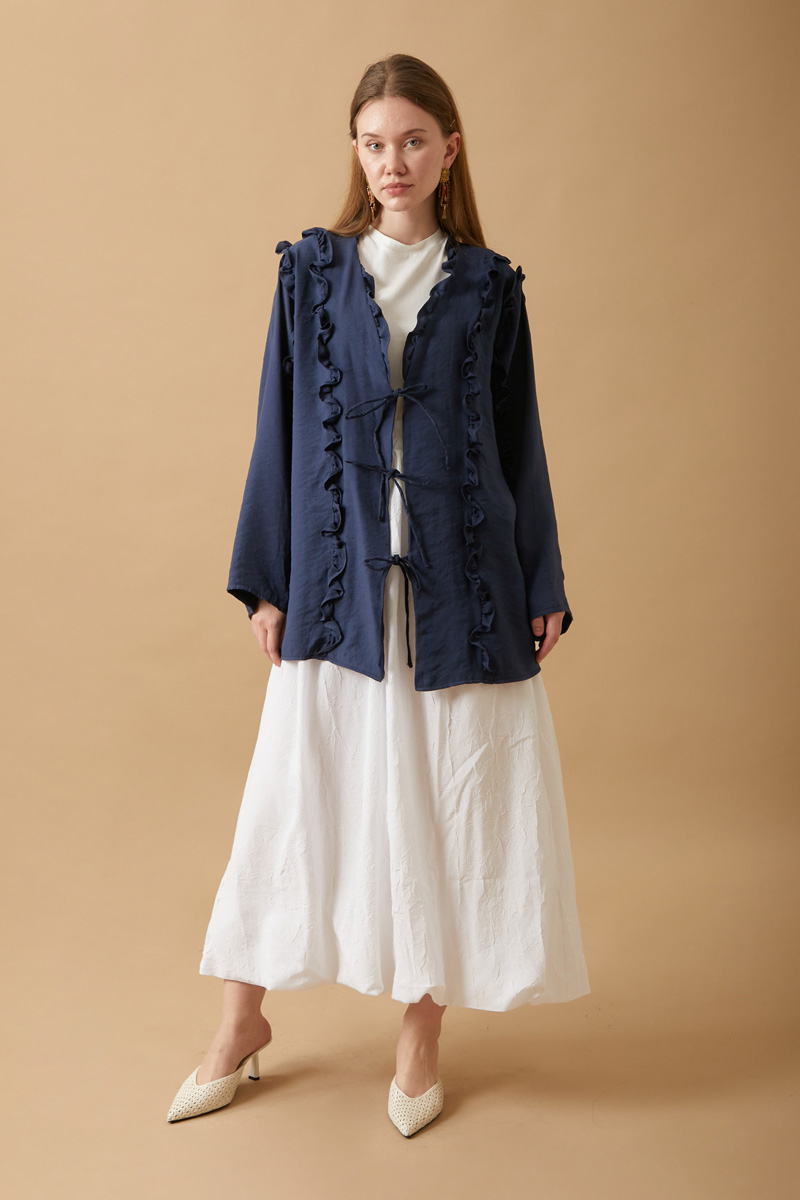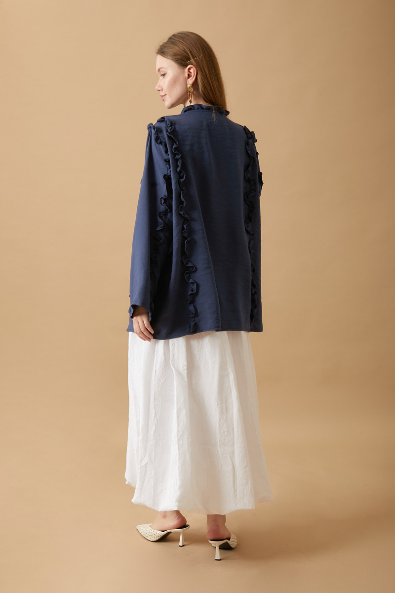 Fırfır Detay Bağlamalı Gömlek Lacivert