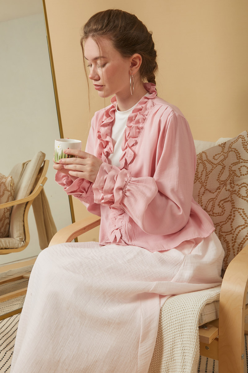 Fırfır Detaylı Bluz Pembe