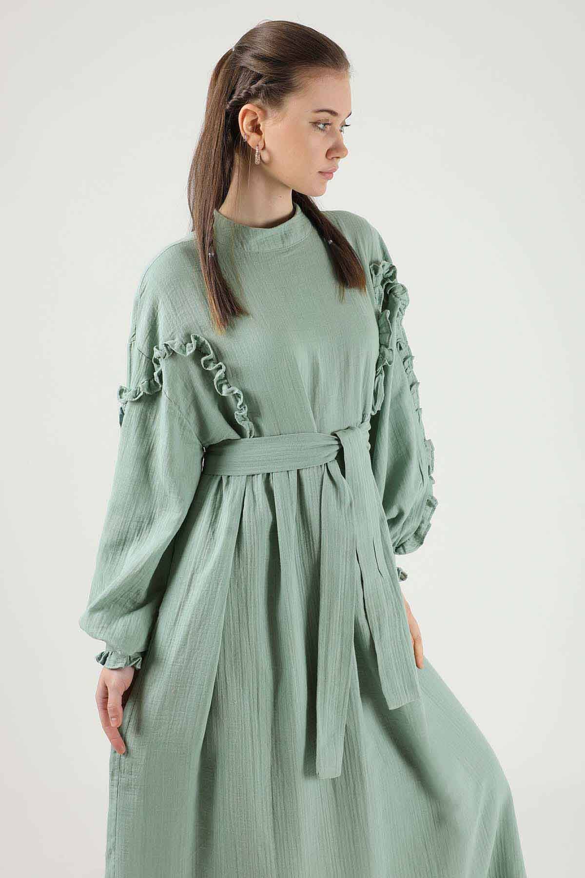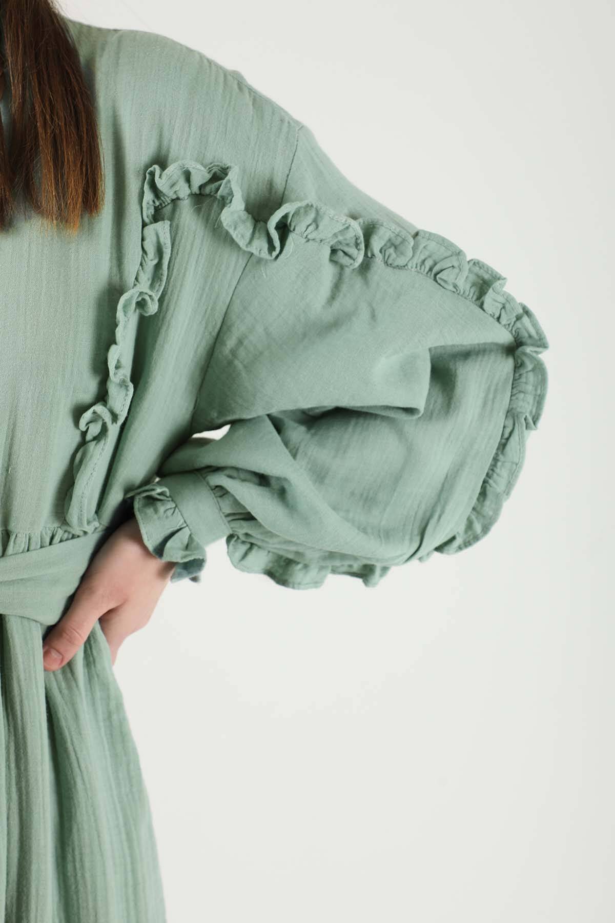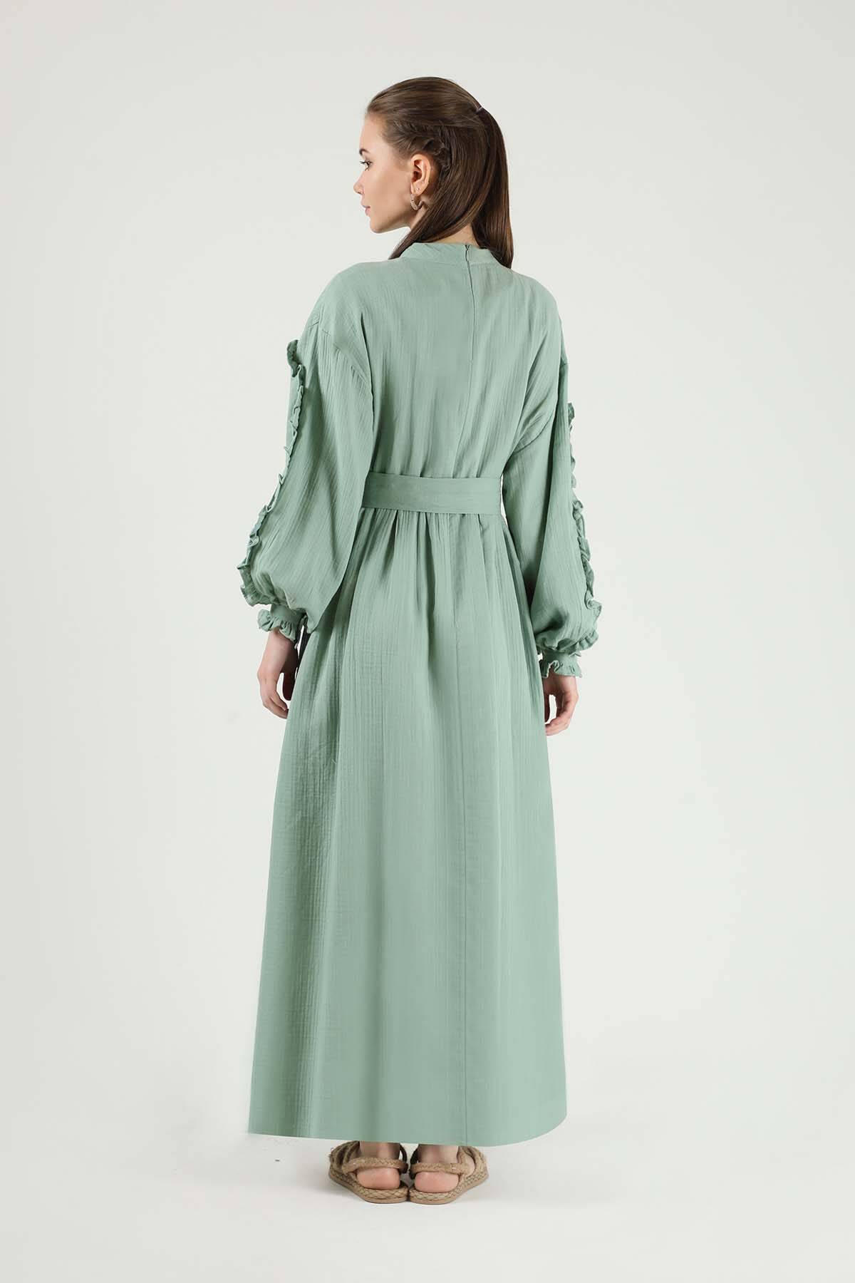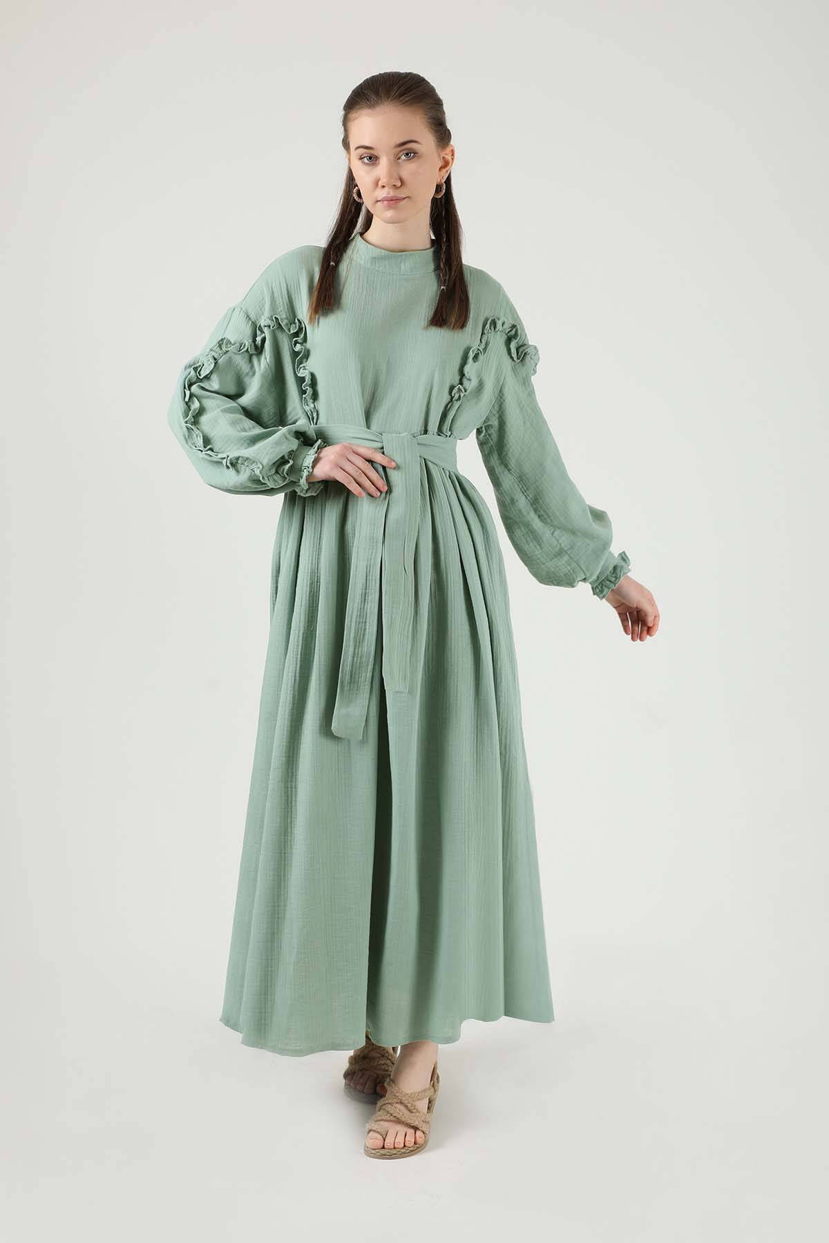 Fırfırlı Müslin Elbise Mint