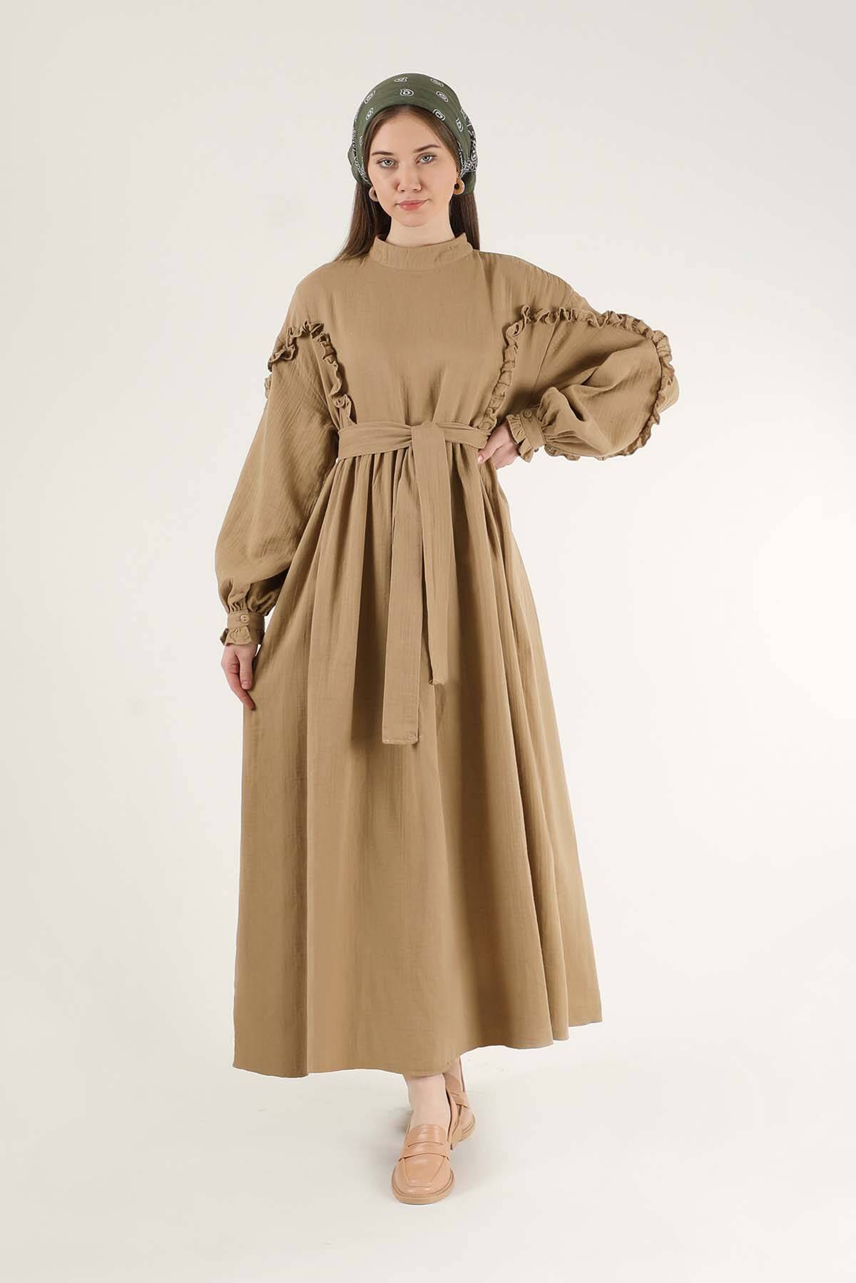 Fırfırlı Müslin Elbise Sütlü Kahve