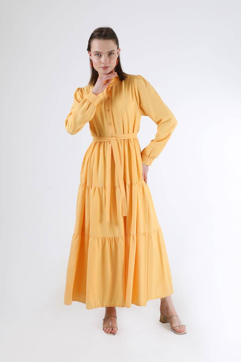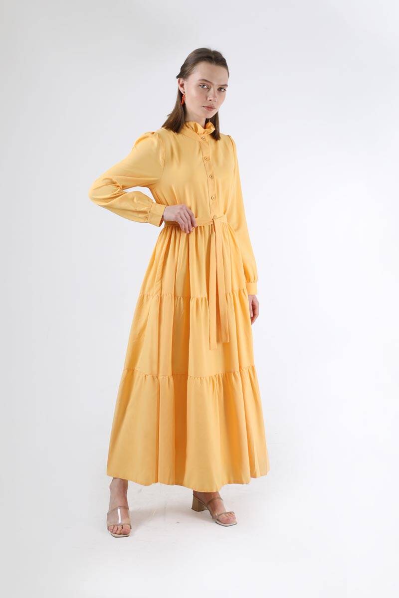 Fırfır Yaka Elbise Sarı