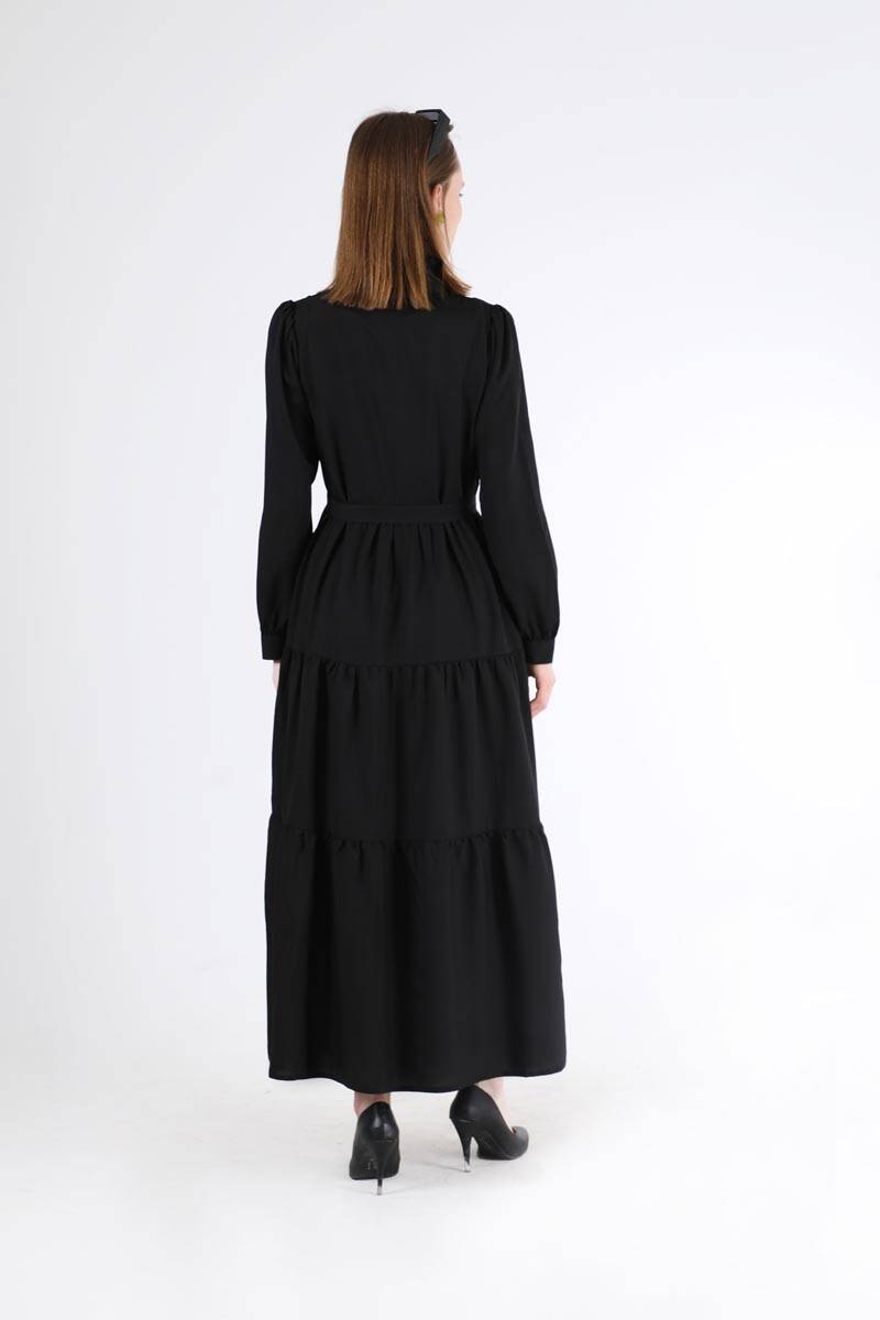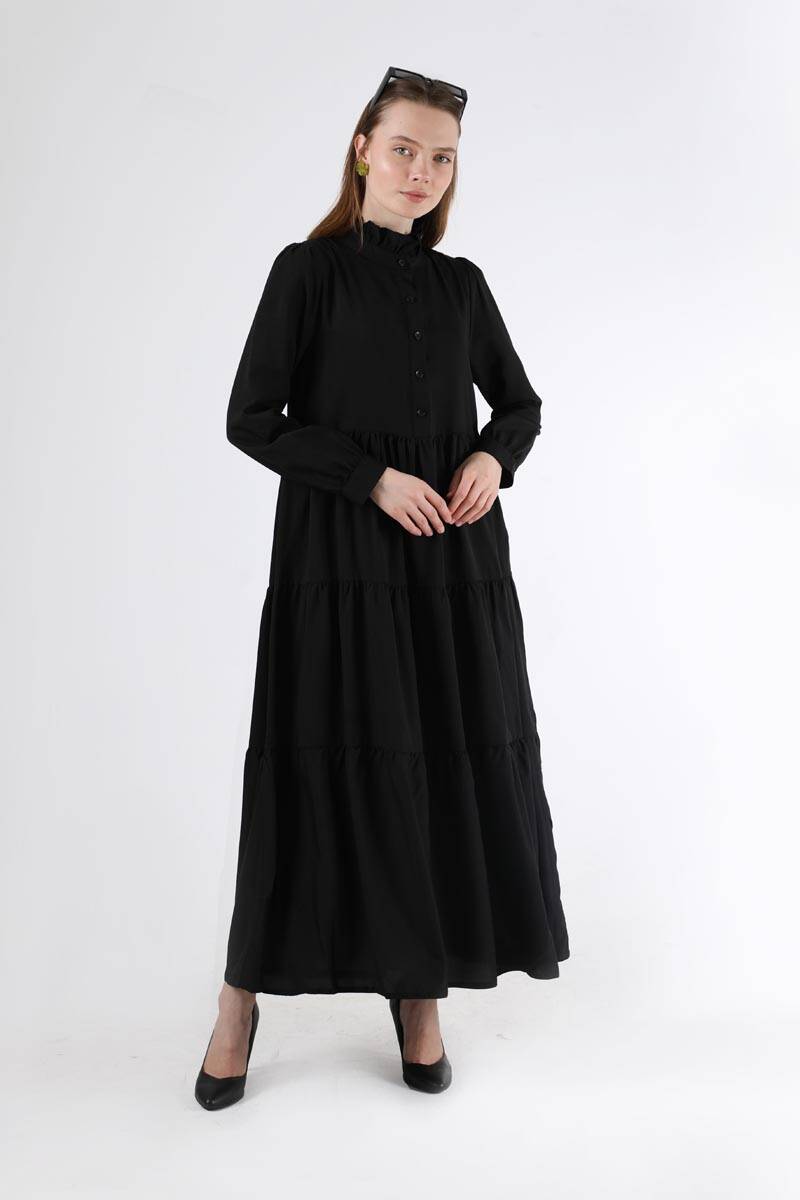 Fırfır Yaka Elbise Siyah