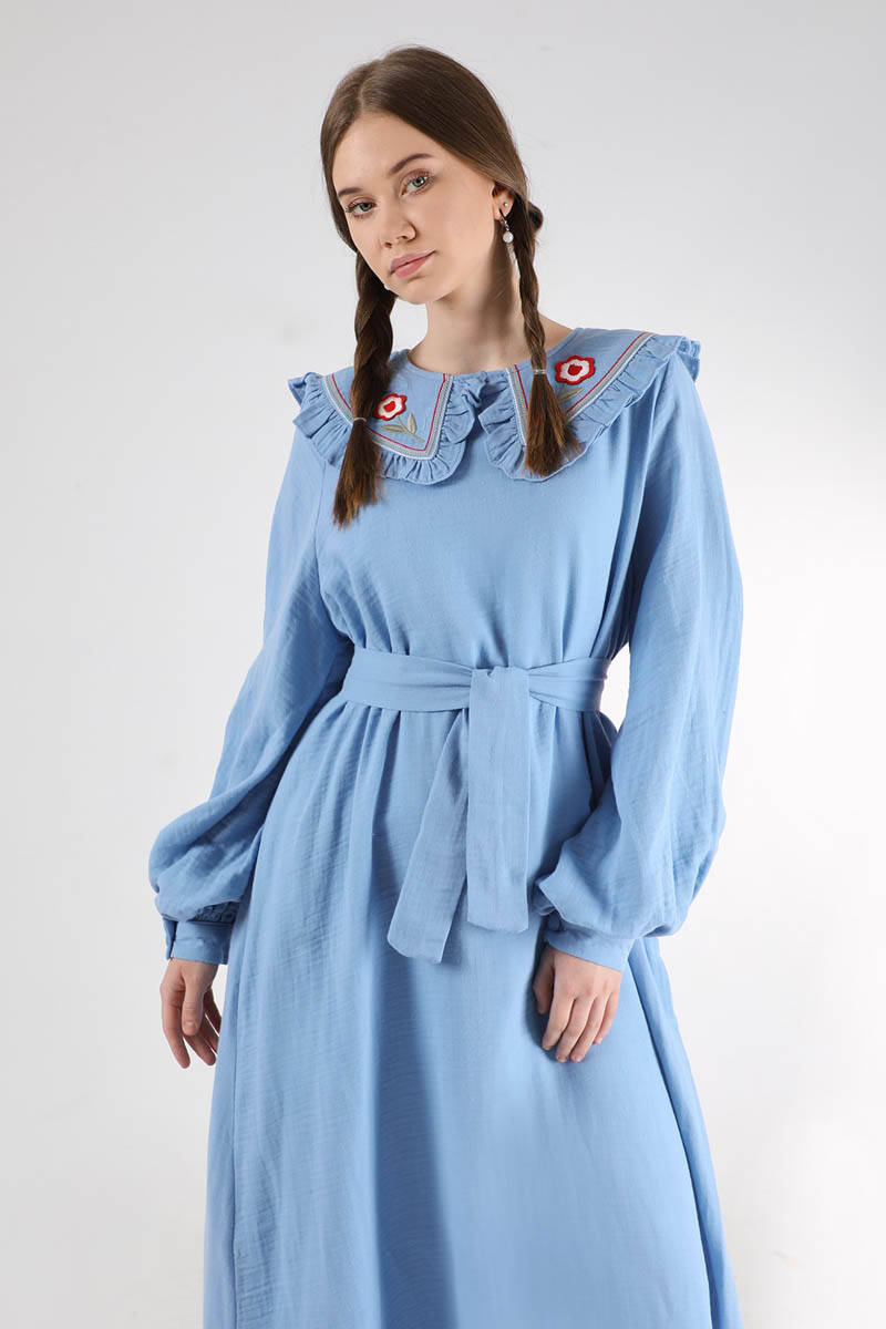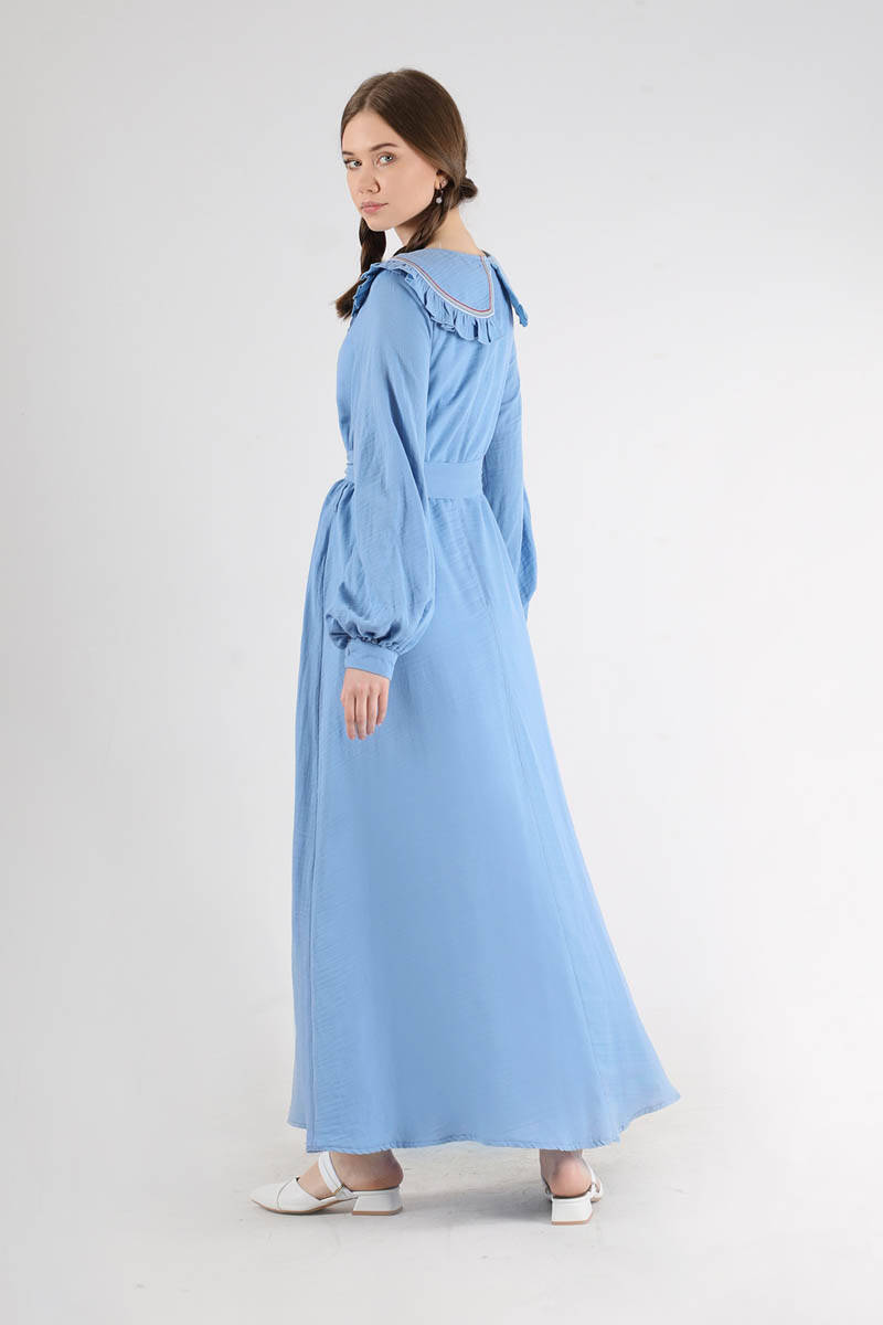 Fırfırlı Bebe Yaka Elbise Bebe Mavisi
