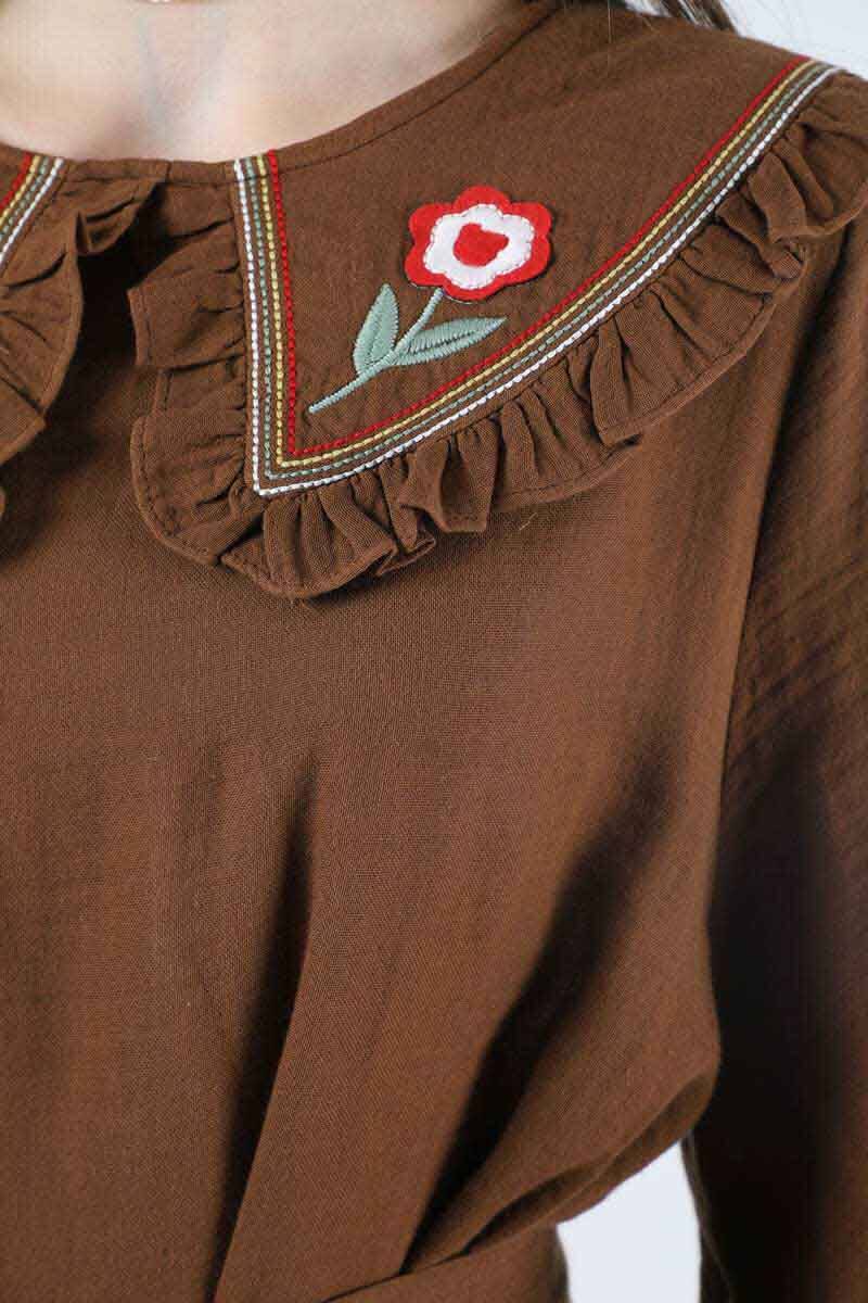 Fırfırlı Bebe Yaka Elbise Kahve. Yakası fırfırlıdır. Yakası nakışlıdır. Manşeti düğmelidir. Arkadan fermuarlıdır. Kuşaklıdır. Astarsızdır ( İç göstermez). Normal kalıptır. Günlük kullanım ve Özel günlerinizde tercih edebilirsiniz.