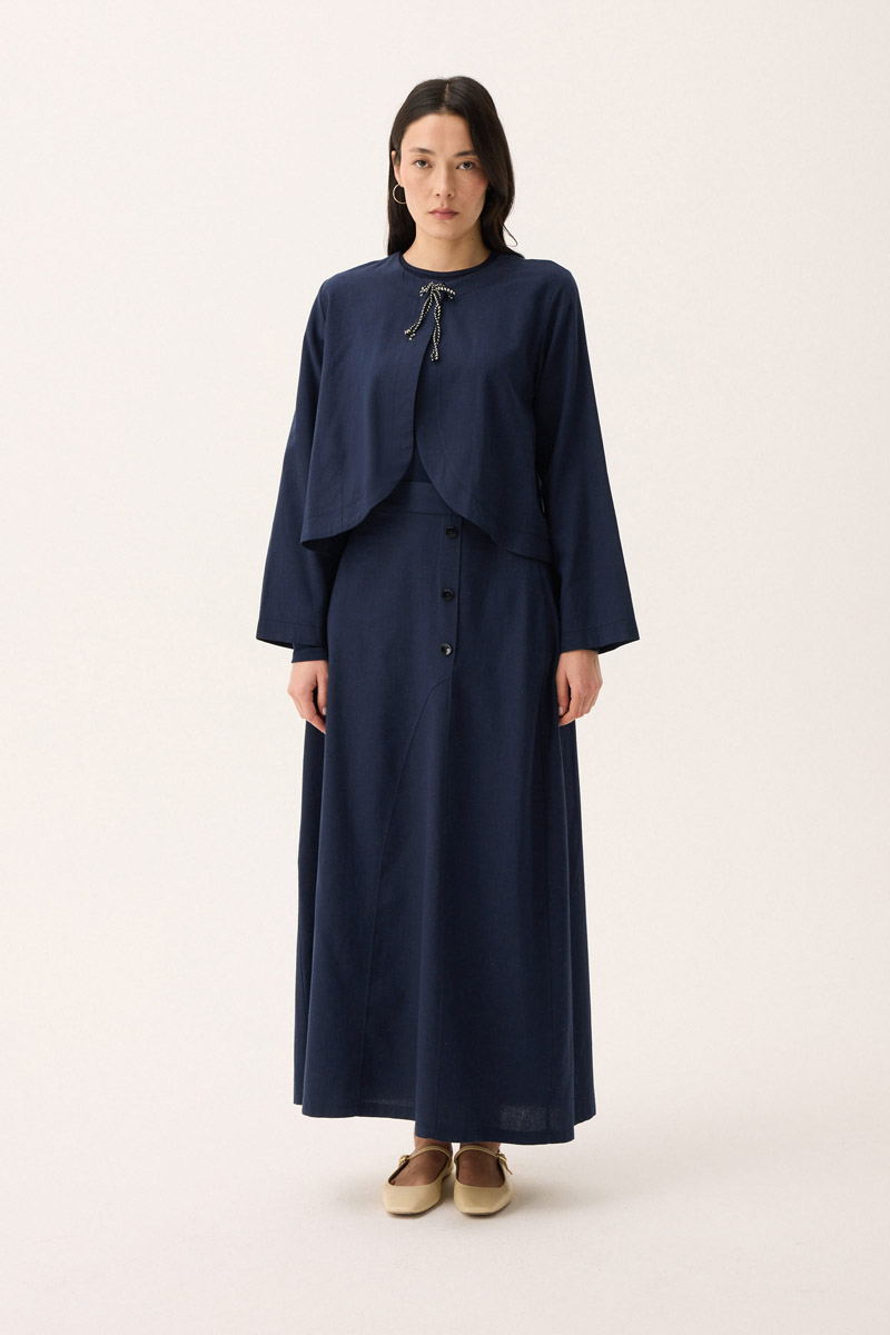 Fiyonklu Sayina Etek Takım Lacivert