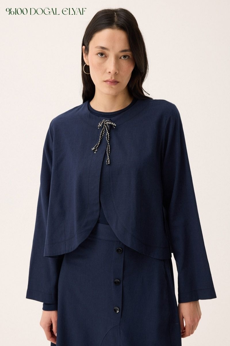 Fiyonklu Sayina Etek Takım Lacivert. Bisiklet yakadır, düşük omuzludur, önden kurdela detaylıdır. Etek asimetrik kuplu süs pat ve düğme detaylıdır, yandan ceplidir, arka bel lastiklidir, astarsızdır. Günlük kullanım ve özel günlerinizde tercih edebilirsiniz.