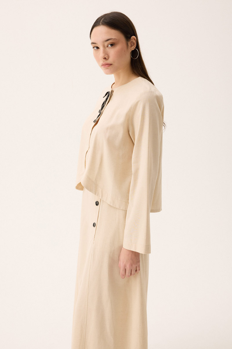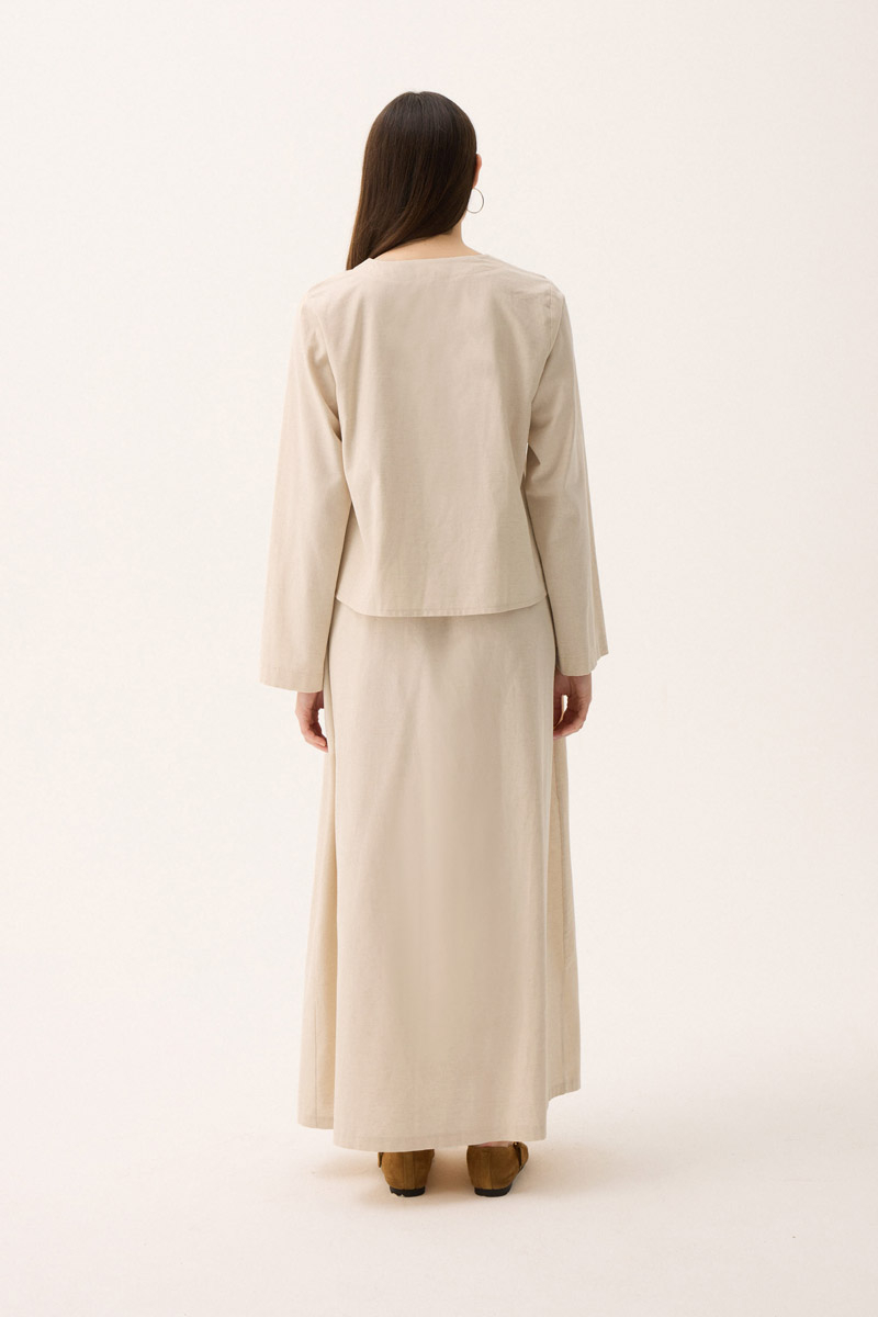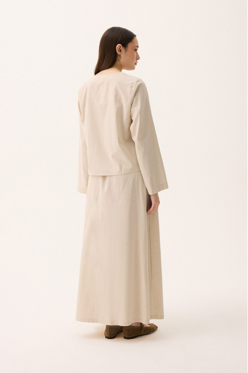 Dipnot: Bu üründe doğal kumaş yapısından dolayı, ilk yıkamada kumaşta %2 oranında çekme olabilir. Ketenin içeriğinden kaynaklı olan bu durum, ürünün formunu ve şıklığını etkilemez. İlk yıkamada soğuk su ve hassas program tercih etmeniz bu durumu azaltacaktır.