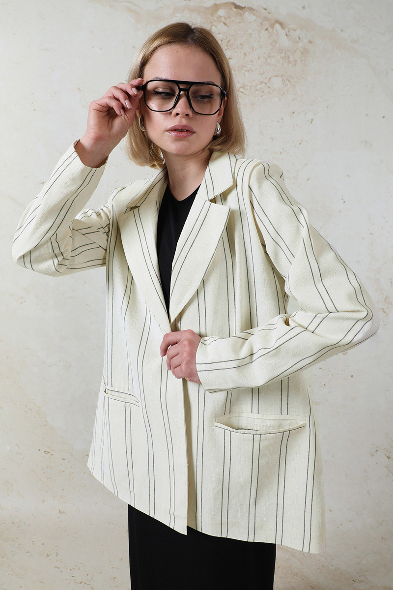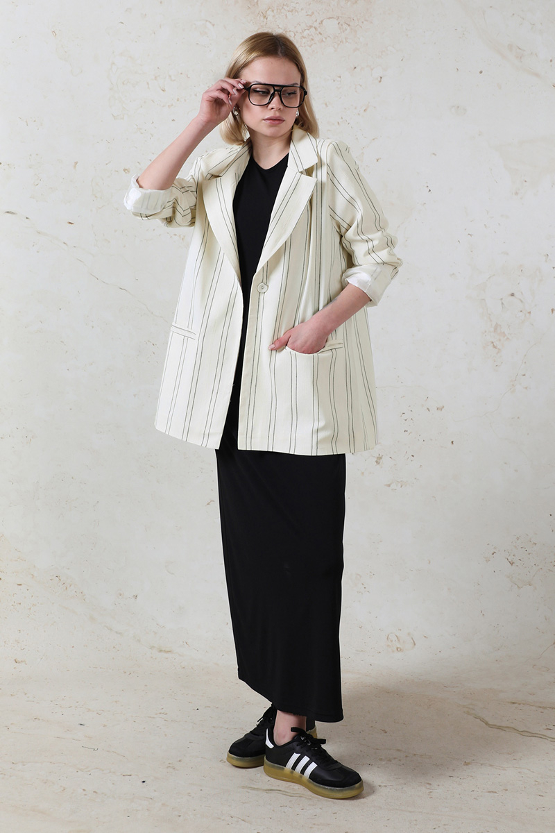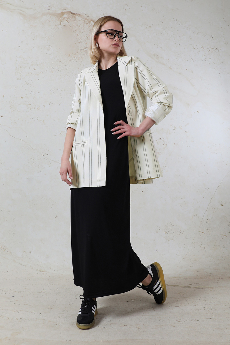 Fleto Cepli Keten Ceket Siyah. Fleto ceplidir. Çizgilidir. Düğmelidir. Astarlıdır.
