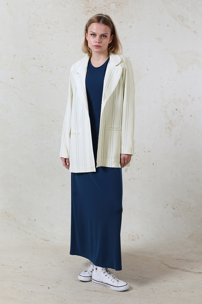 Fleto Cepli Keten Ceket Yeşil. Fleto ceplidir. Çizgilidir. Düğmelidir. Astarlıdır.