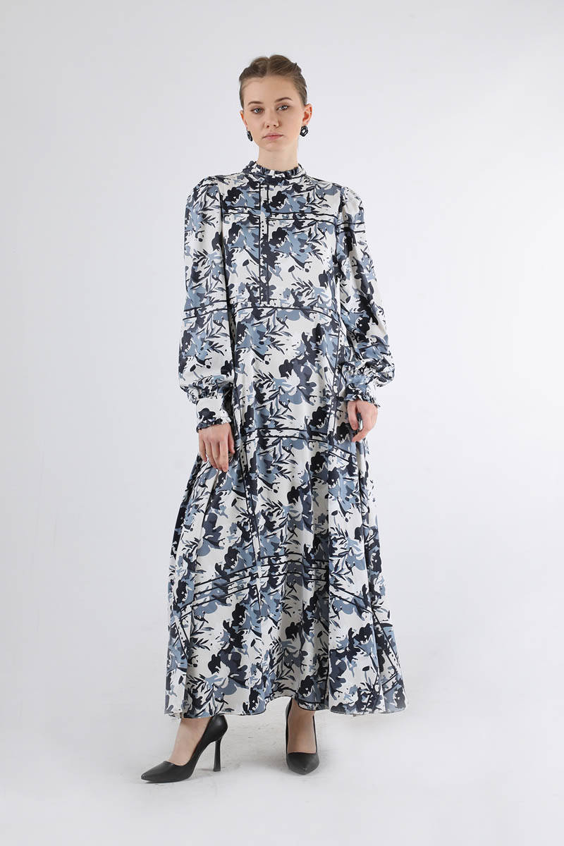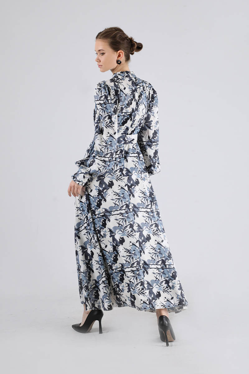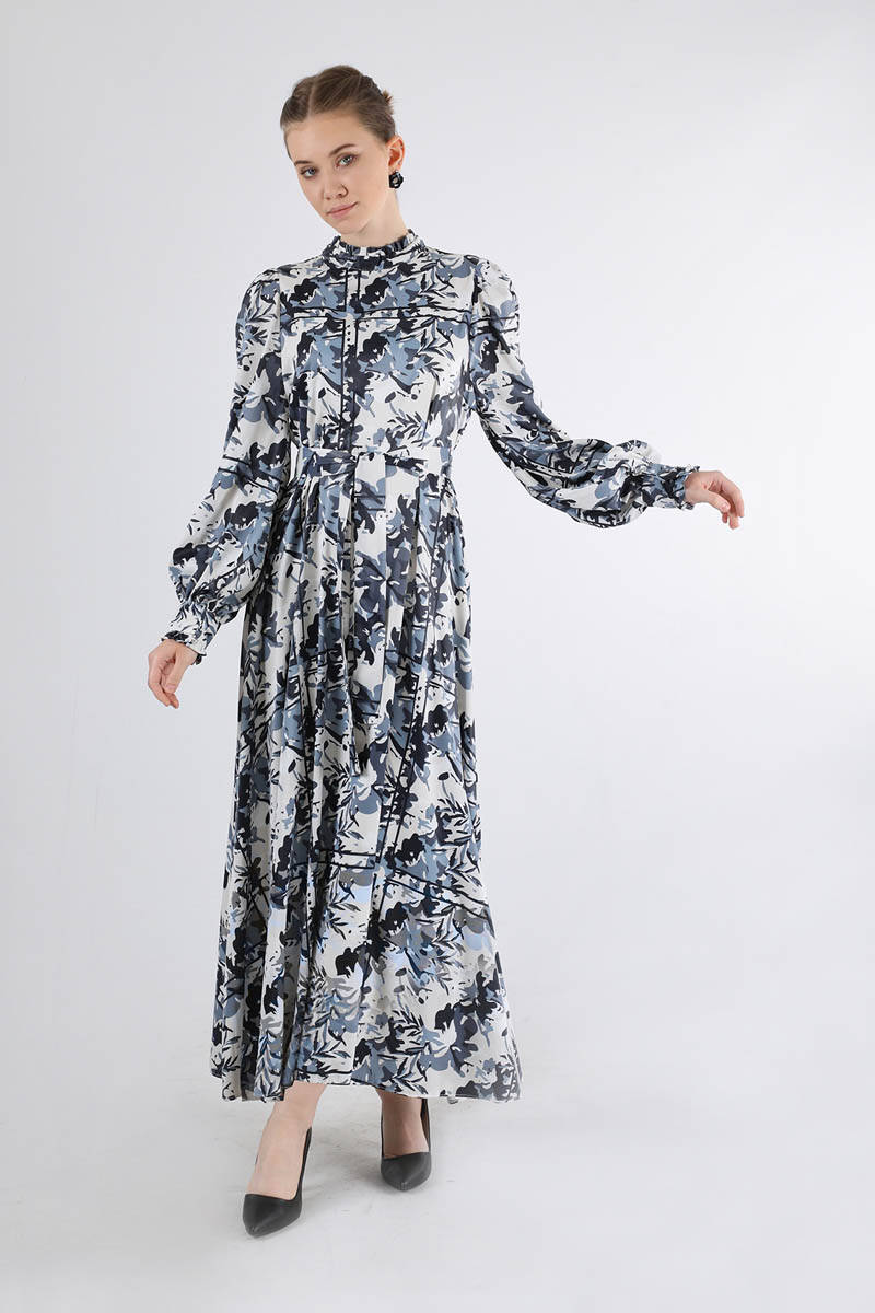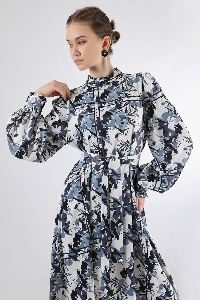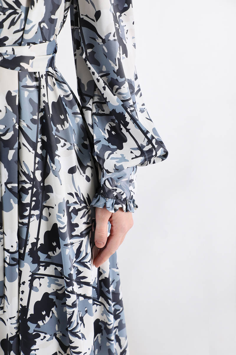 Flora Pattern Floral Dress Black, Ruffled. The cuff is ruffled. His shoulder is shirred. It has a back zipper. is belted. It is unlined. It's a normal pattern. You can choose it for your daily use and special days.