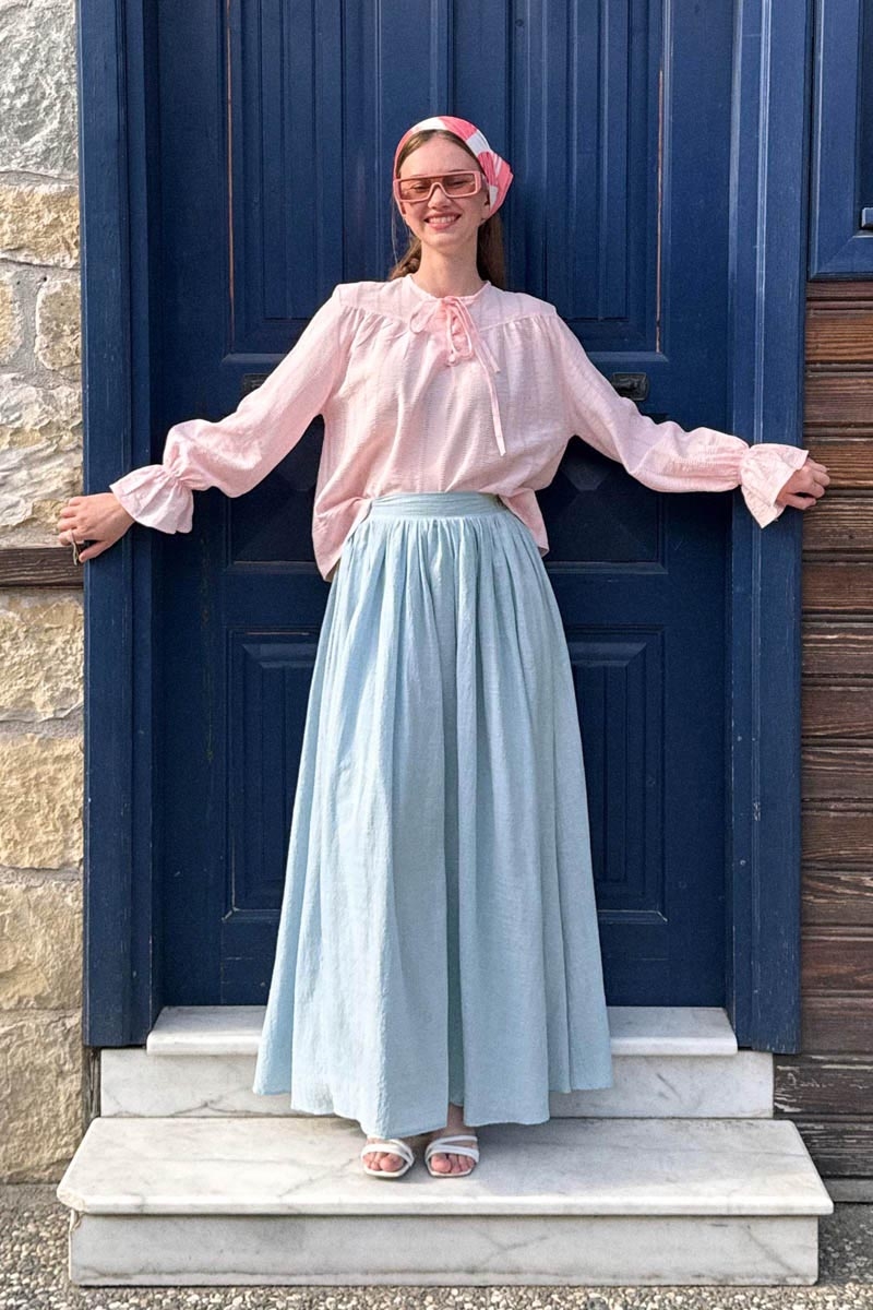 Designed for those seeking a natural and authentic style, this slub-textured cotton skirt adds a relaxed yet sophisticated touch to your wardrobe. Made from 100% cotton with a special slub weave, it offers breathability and unmatched comfort throughout the day. The flared silhouette and gathered details provide a modern and elegant look.