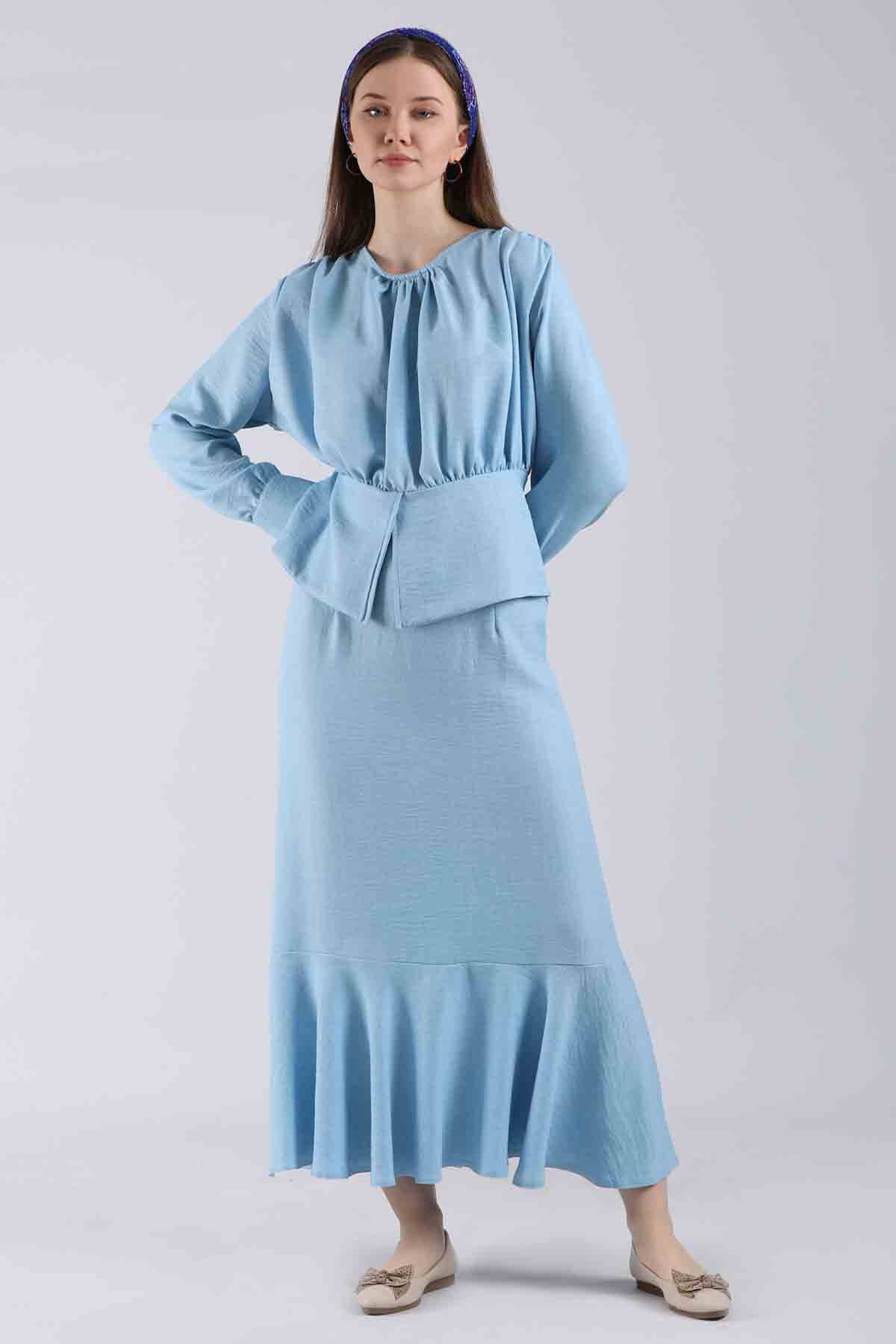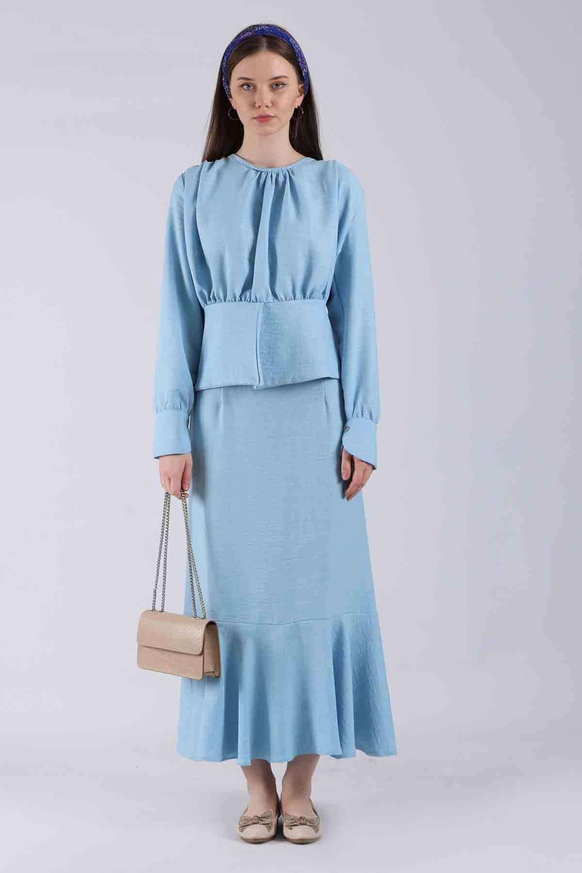 Flywheel Skirt Set Baby Blue. This product, produced with flywheel detail, is one of the most popular models of the new season. Sold as a set with skirt.