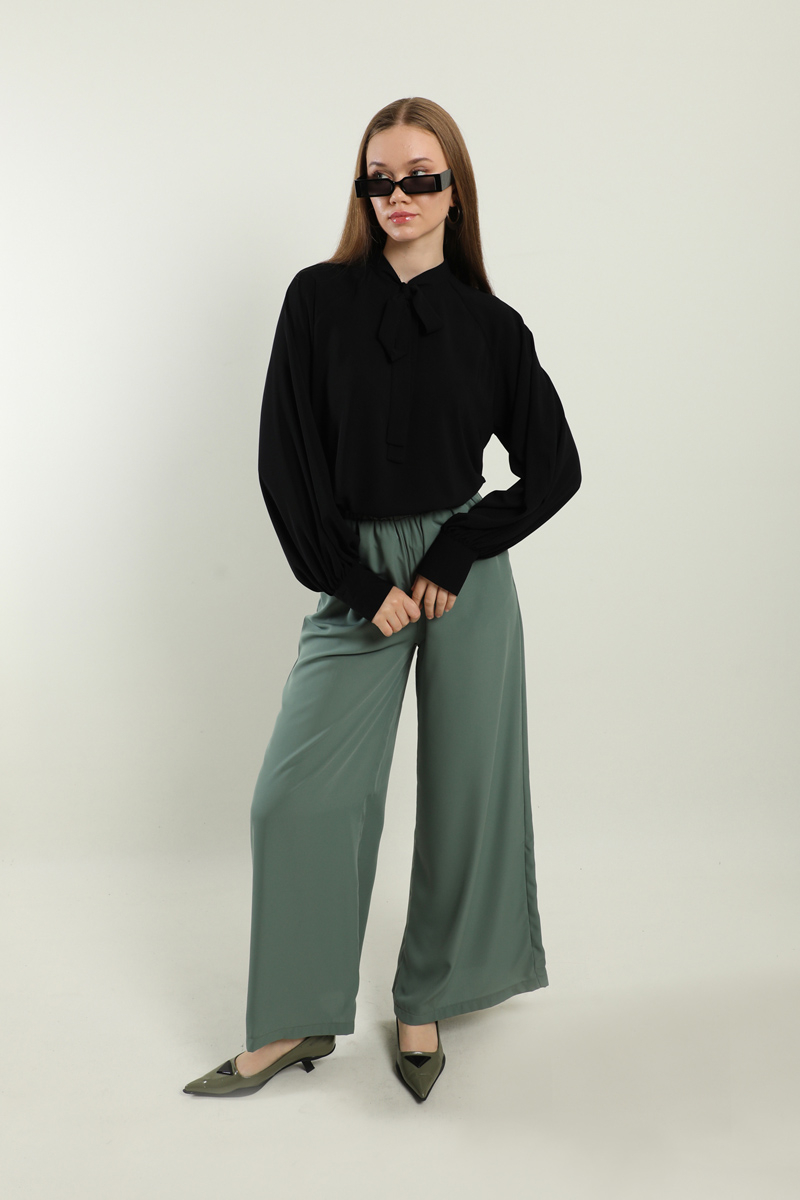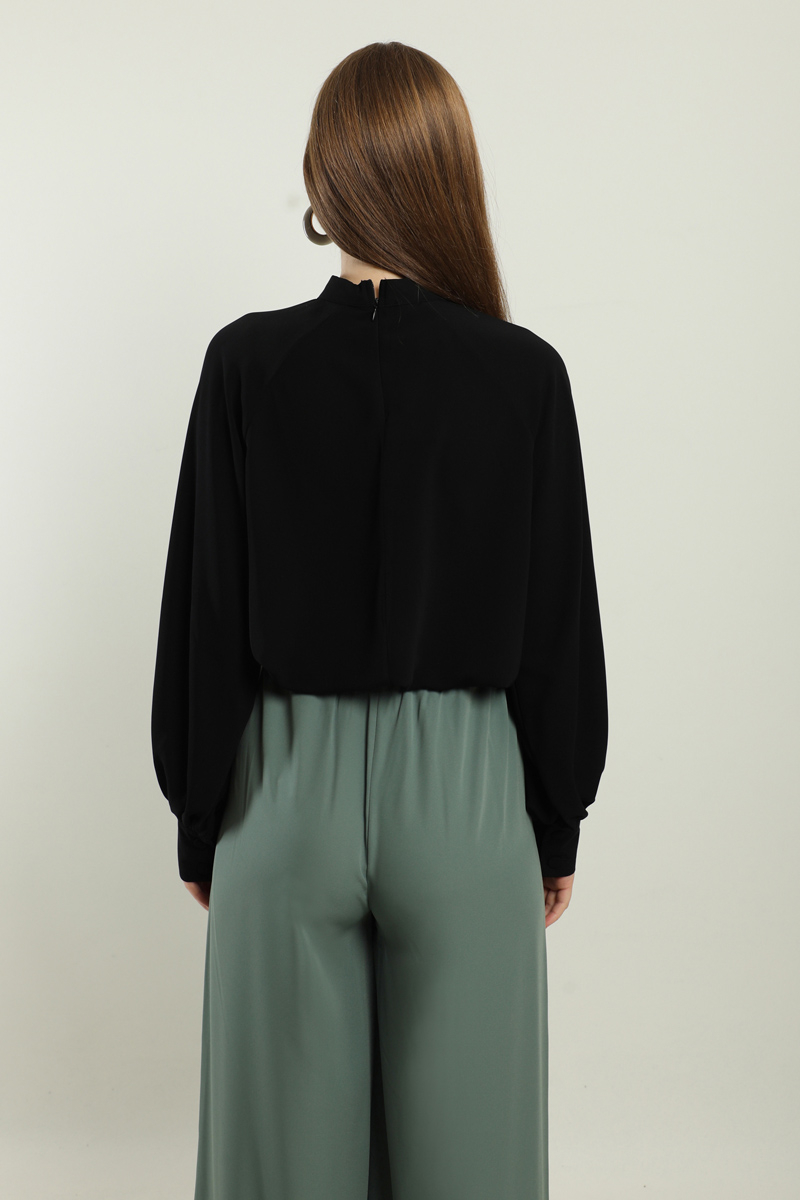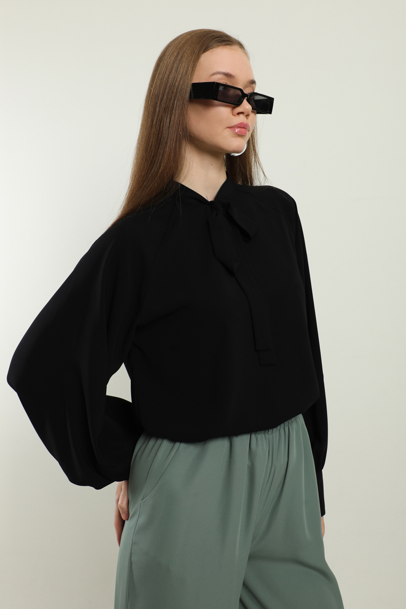 Fularlı Gömlek Siyah. Yaka kısmı fularlıdır, arkadan fermuarlıdır, kolları büzgülüdür, kol manşeti kaılındır, günlük ve özel günlerde kullanıma uygundur, etek ve pantolon üstü kombinlerinizde tercih edebilirsiniz.