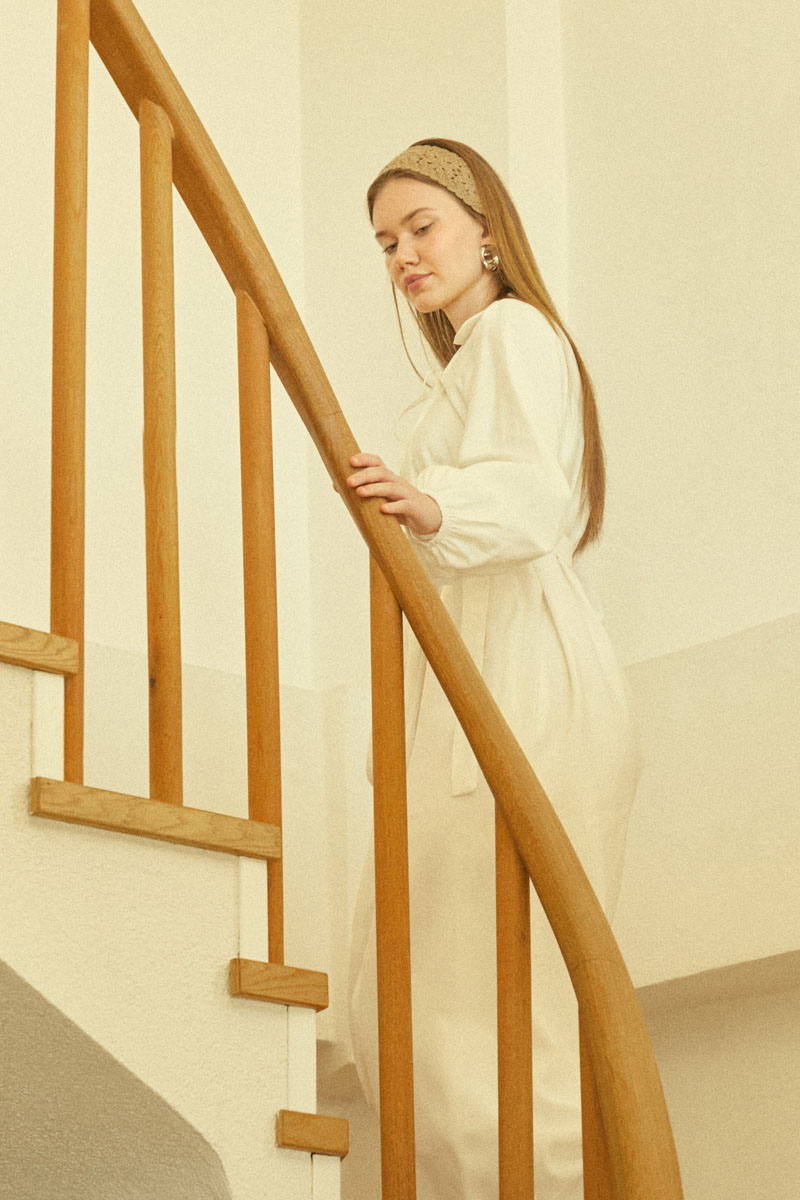 The gathered and tie detail at the neckline creates a modern and feminine look, while the elastic gathering adds a unique touch to the dress. This versatile piece is easy to style for both everyday wear and special occasions.