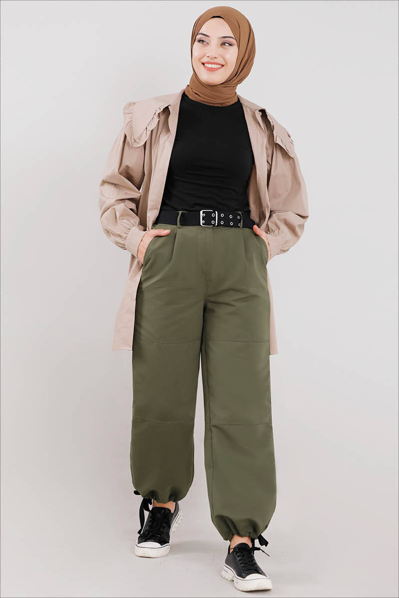 Kemer detaylıdır. Arka bel lastiklidir. Paçalarını sıkarak da kullanabilirsiniz.Yeni sezon ürünüdür.