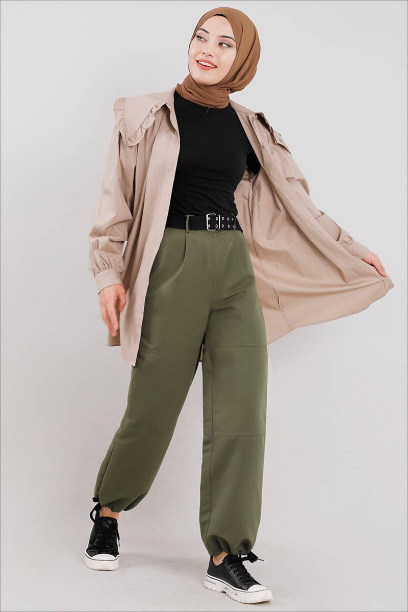 Gabardin Kargo Pantolon Haki