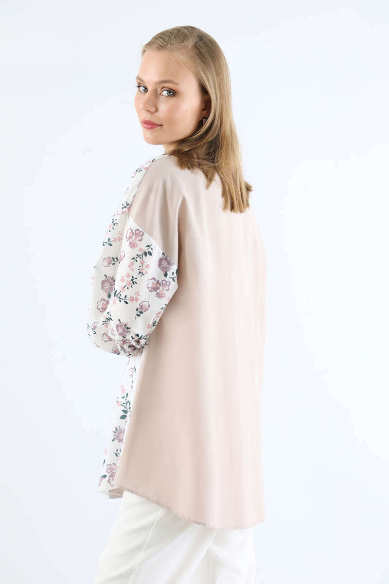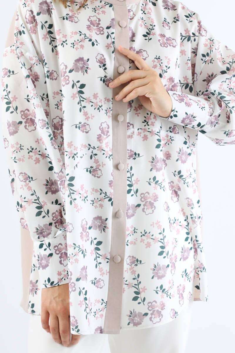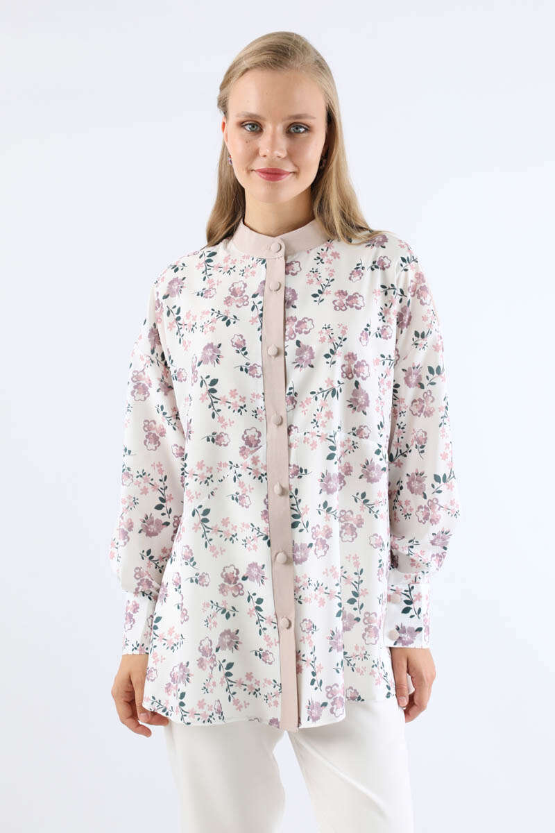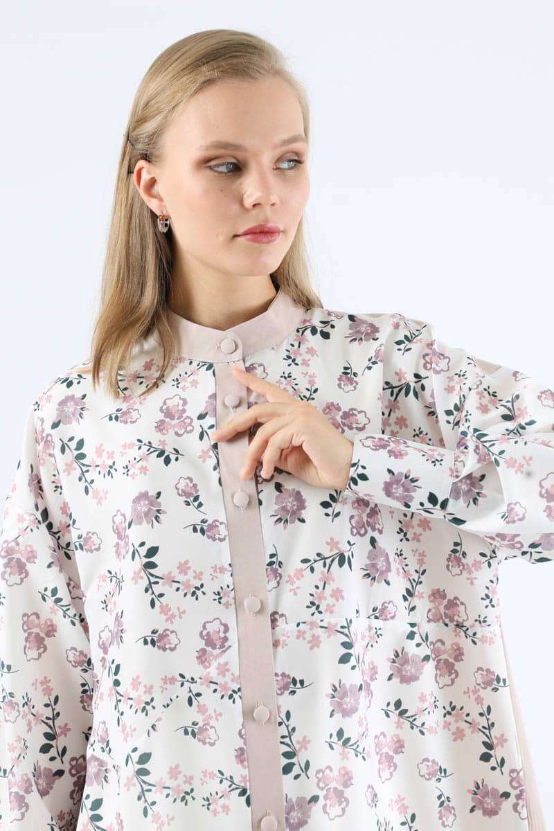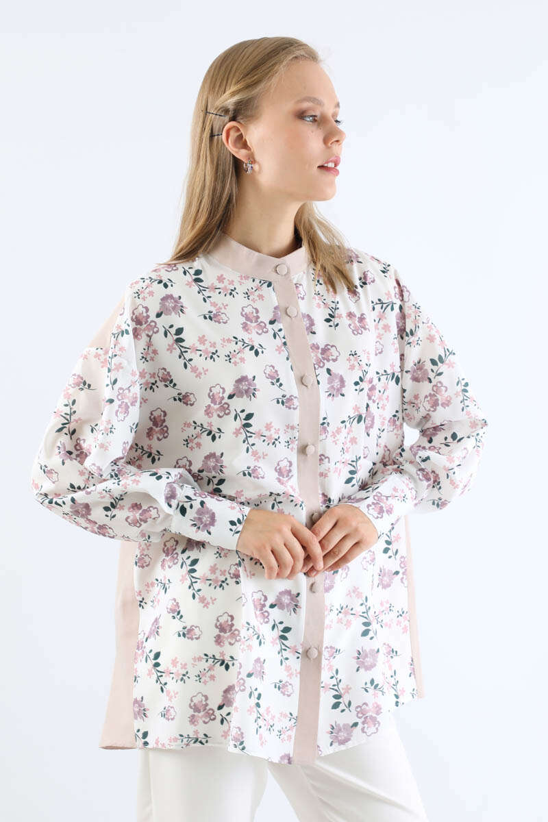 Çiçek Desenli Gömlek Gül Kurusu