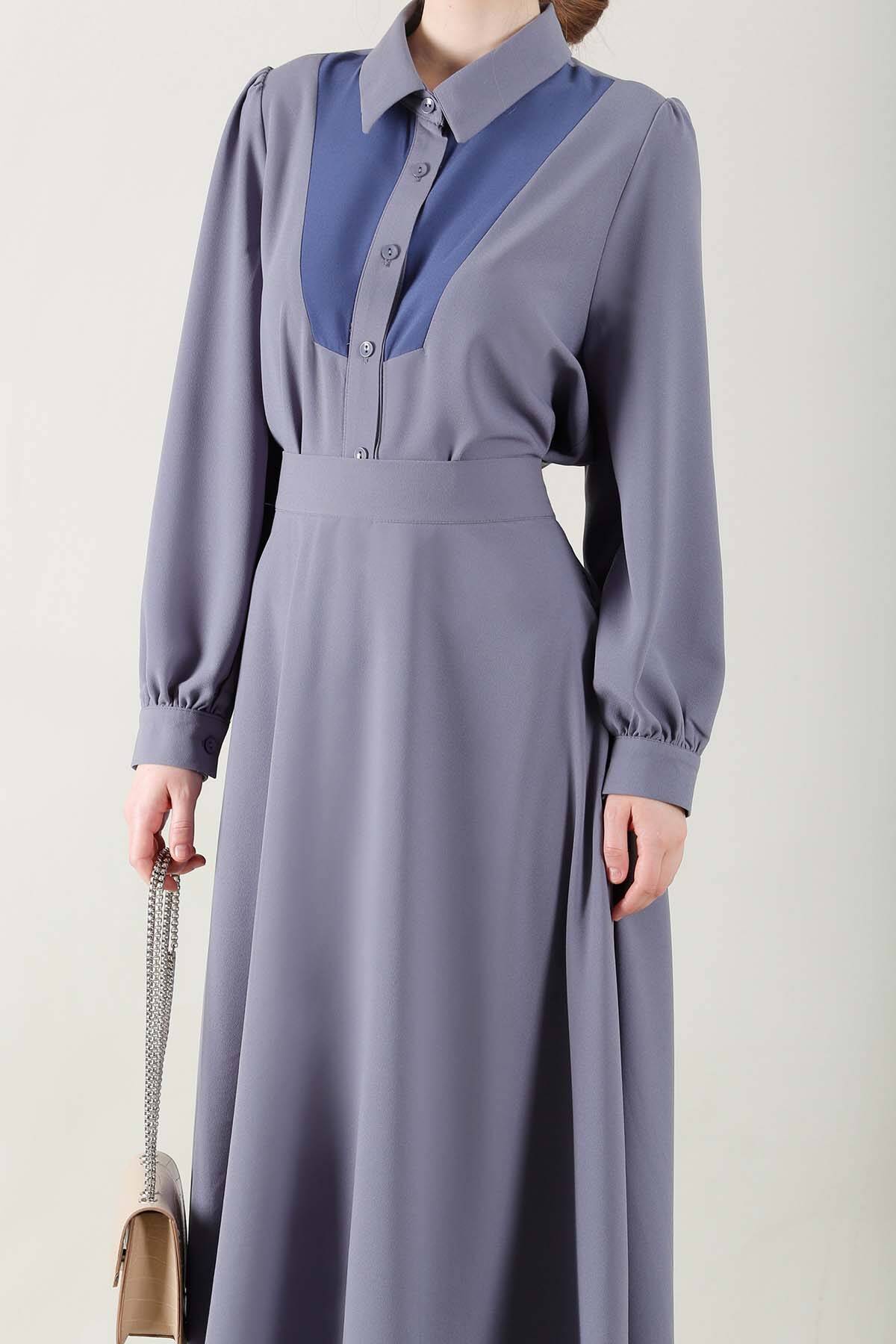 Garnili Etek Takım Koyu Gri