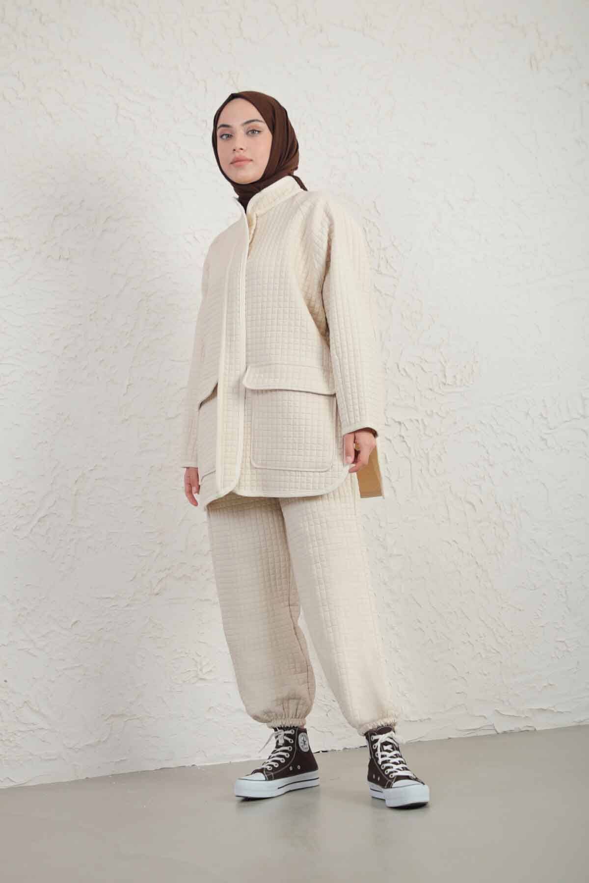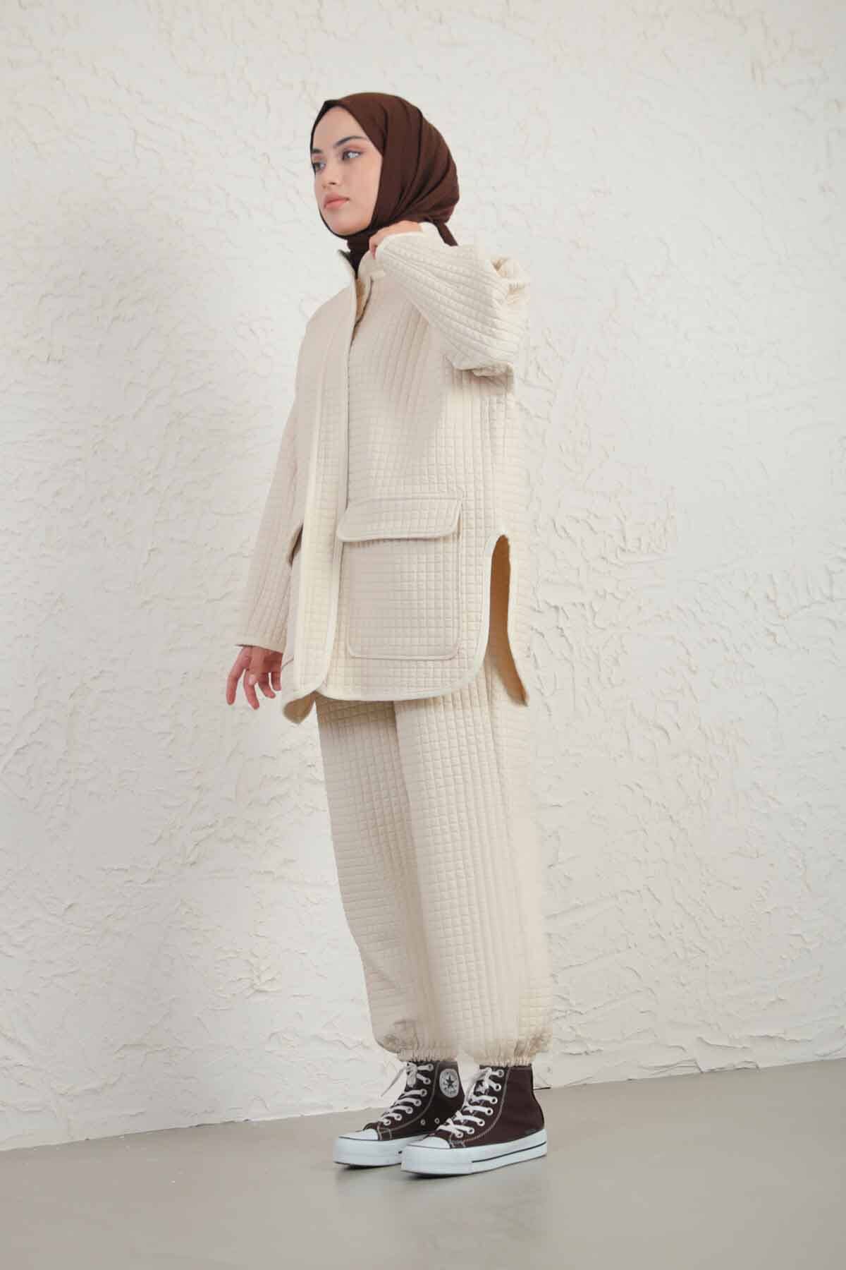 Garnili Kapitone Takım Bej