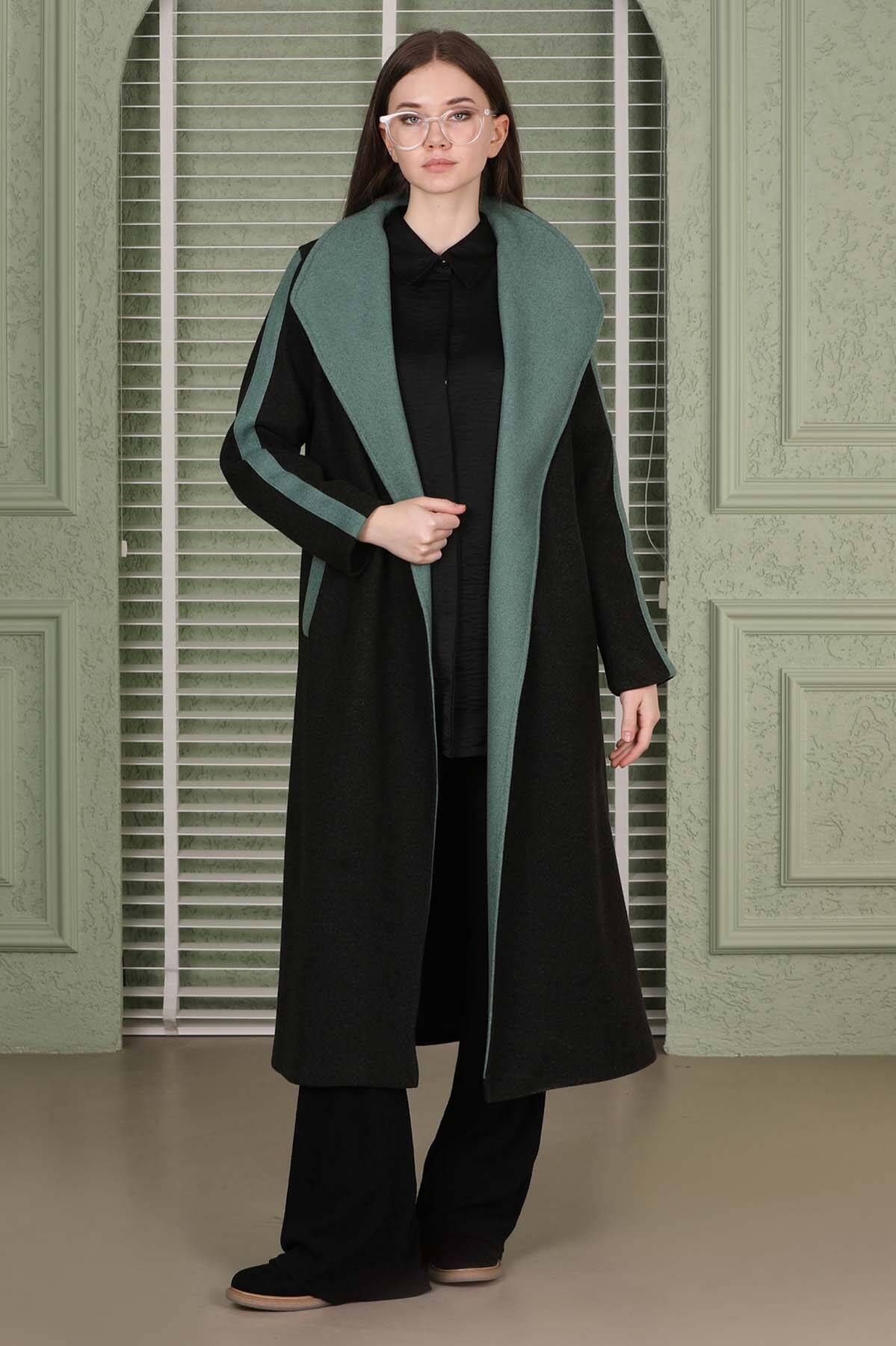 Garnili Kaşe Kaban Siyah