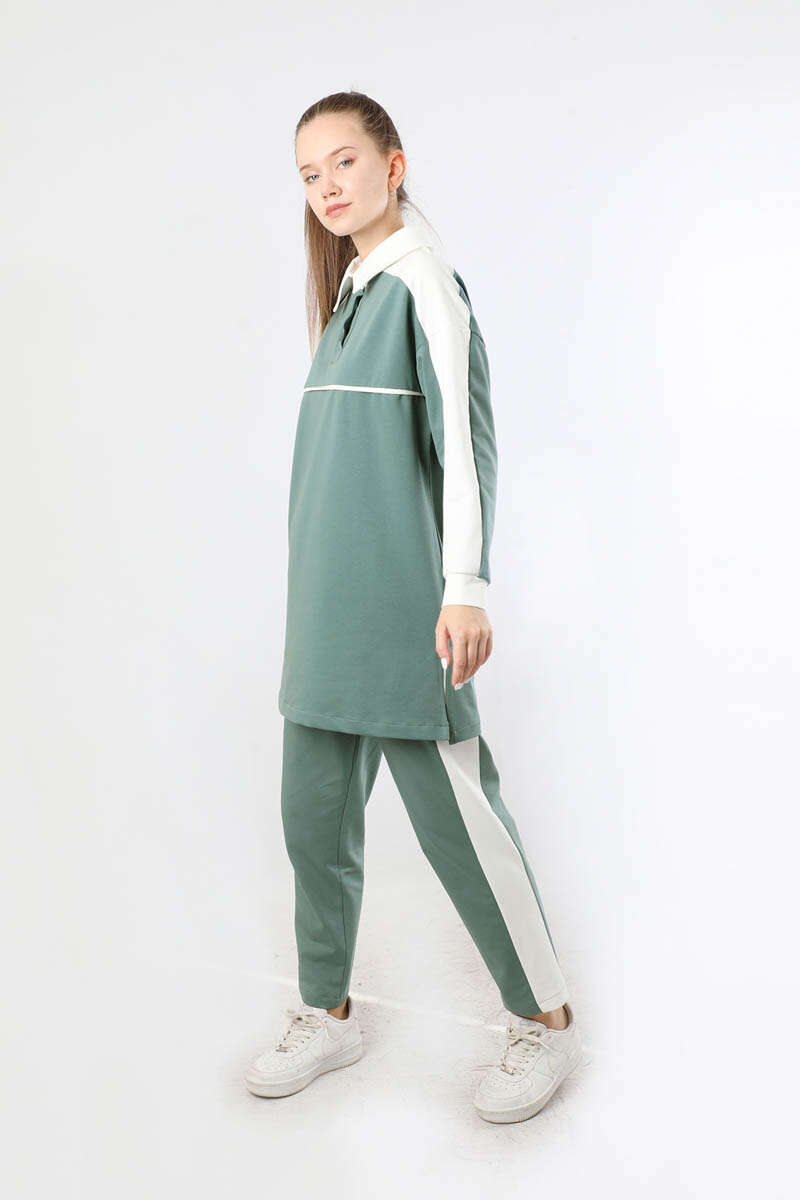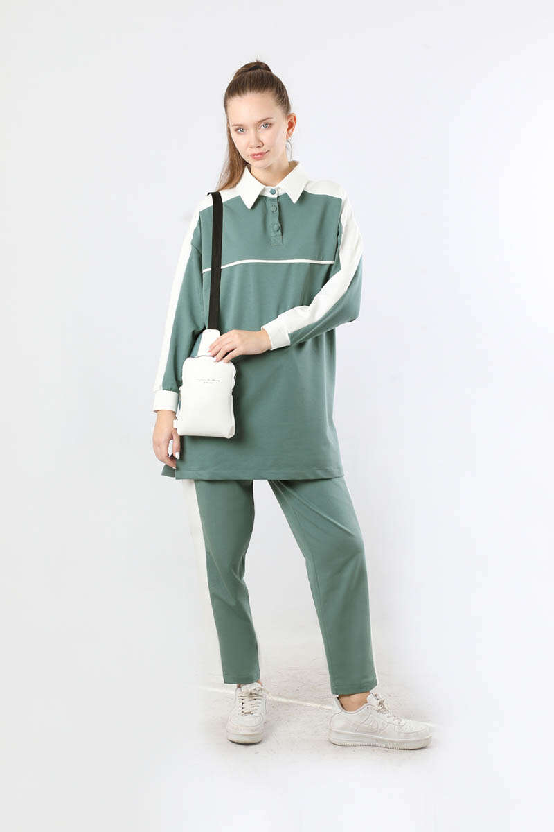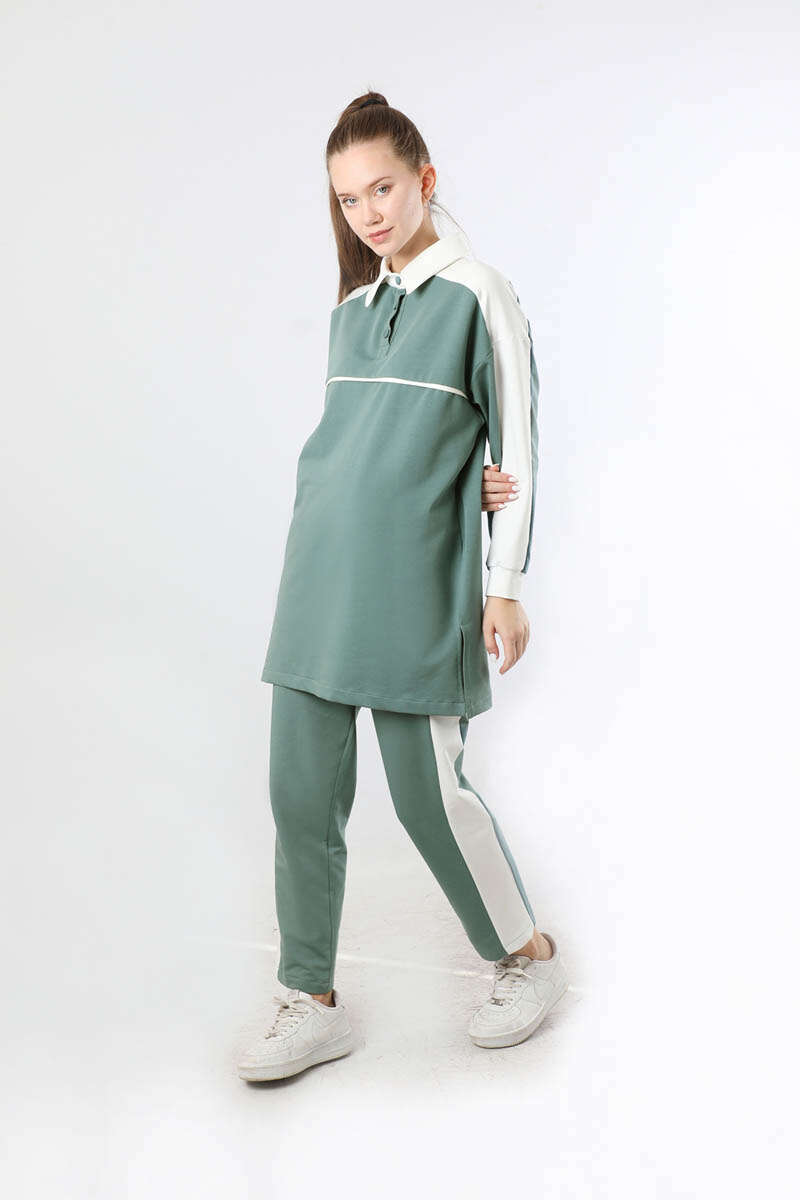 Garnili Spor Takım Mint. Gömlek yakaldır. Önden düğme detaylıdır. Yandan yırtmaçlıdır. Bilezik manşet detaylıdır. Yaka ve kollar garni detaylıdır. Pantolon beli lastiklidir. Pantolon yandan ceplidir. Günlük kullanım ve özel günlerinizde tercih edebilirsiniz.