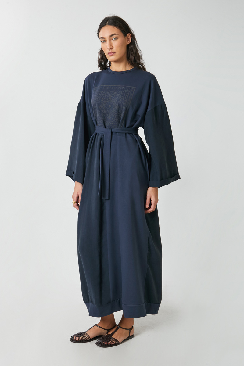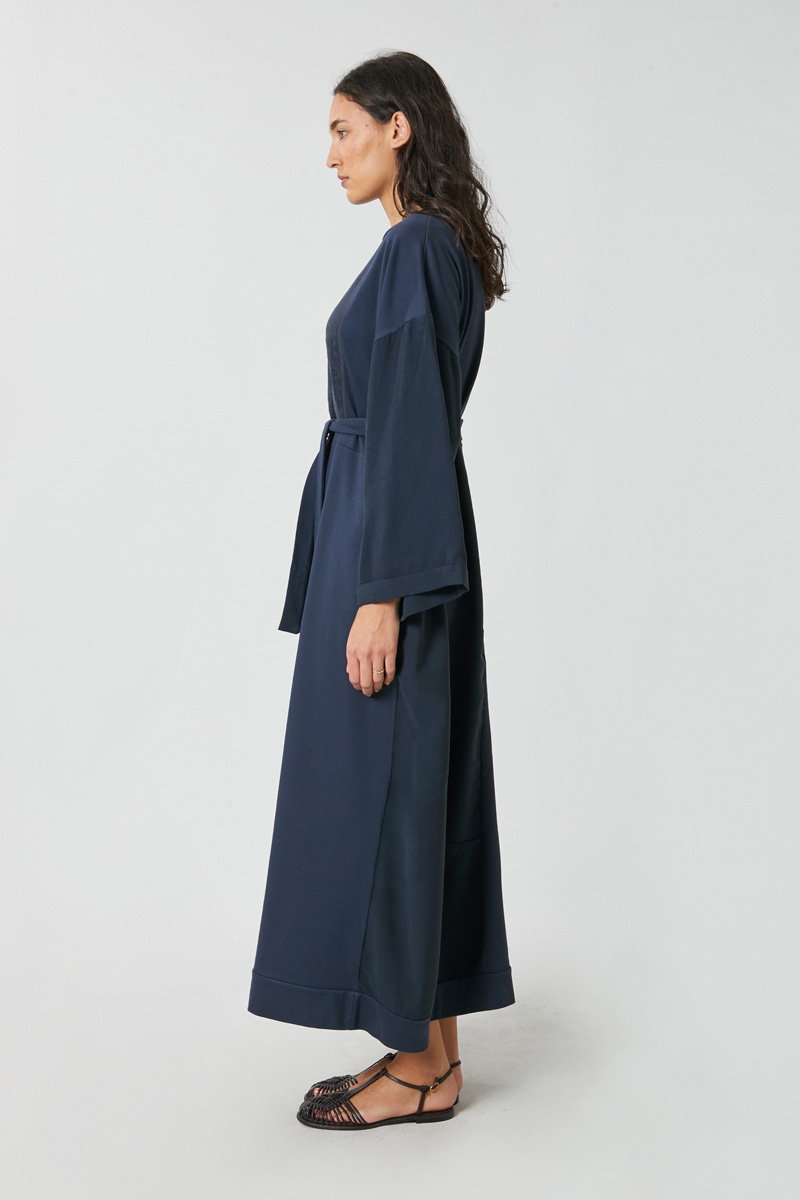 Garnili Sweat Elbise Lacivert. Bisiklet yakadır, düşük omuzludur, kabartma baskı desenlidir, geniş kolludur, manşeti katlamalıdır, garnilldir, yandan ceplidir, kuşaklıdır, astarsızdır. Günlük kullanımda tercih edebilirsiniz.