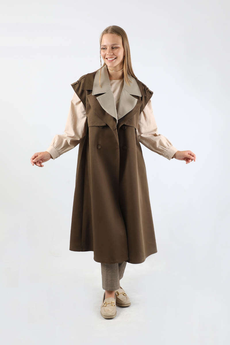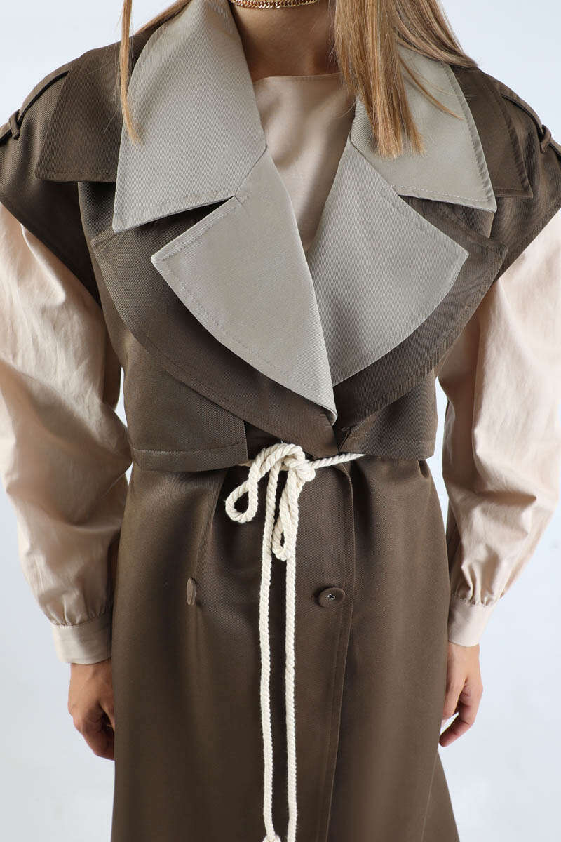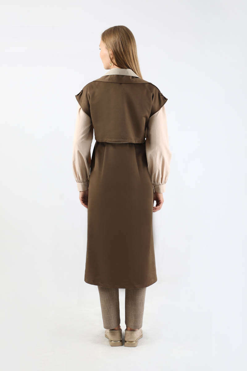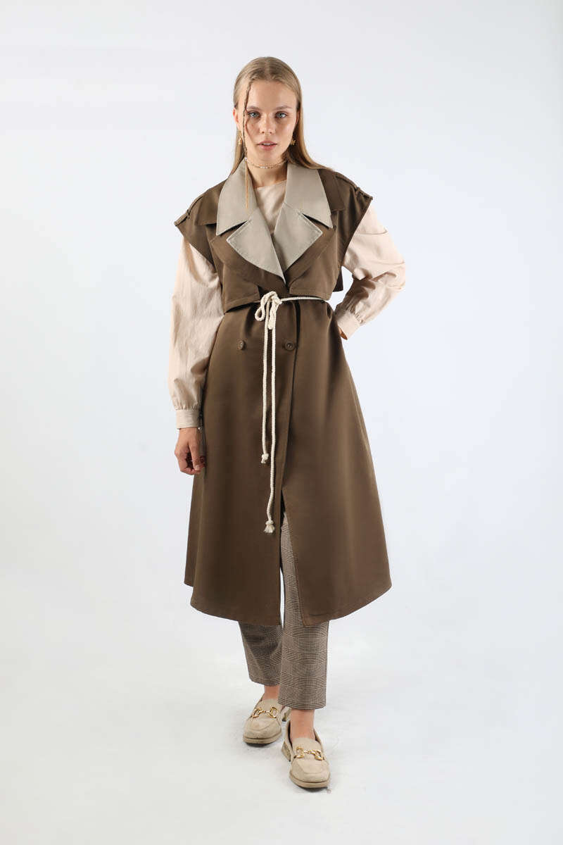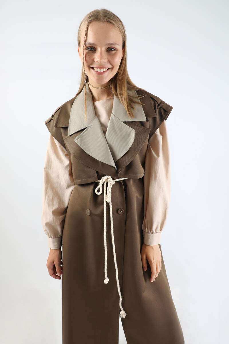Garnili Yelek Trençkot Kahverengi