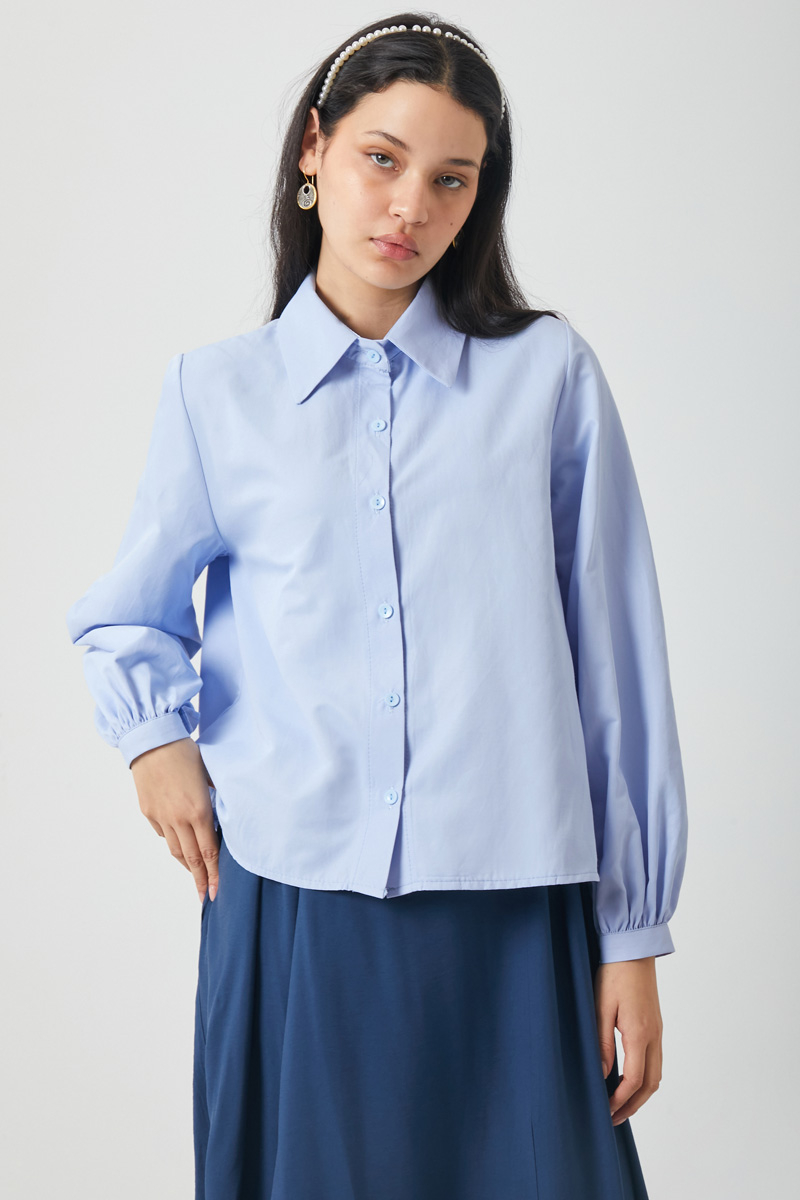 Manşeti Büzgülü Poplin Gömlek Bebe Mavisi