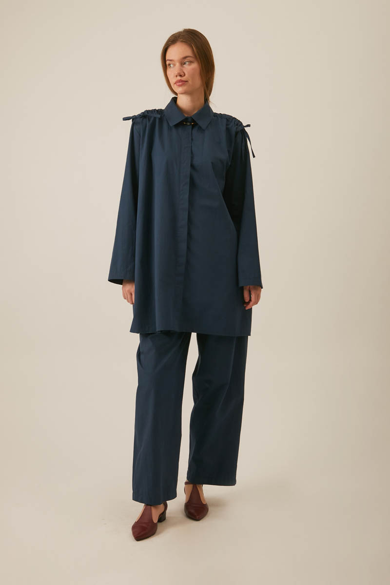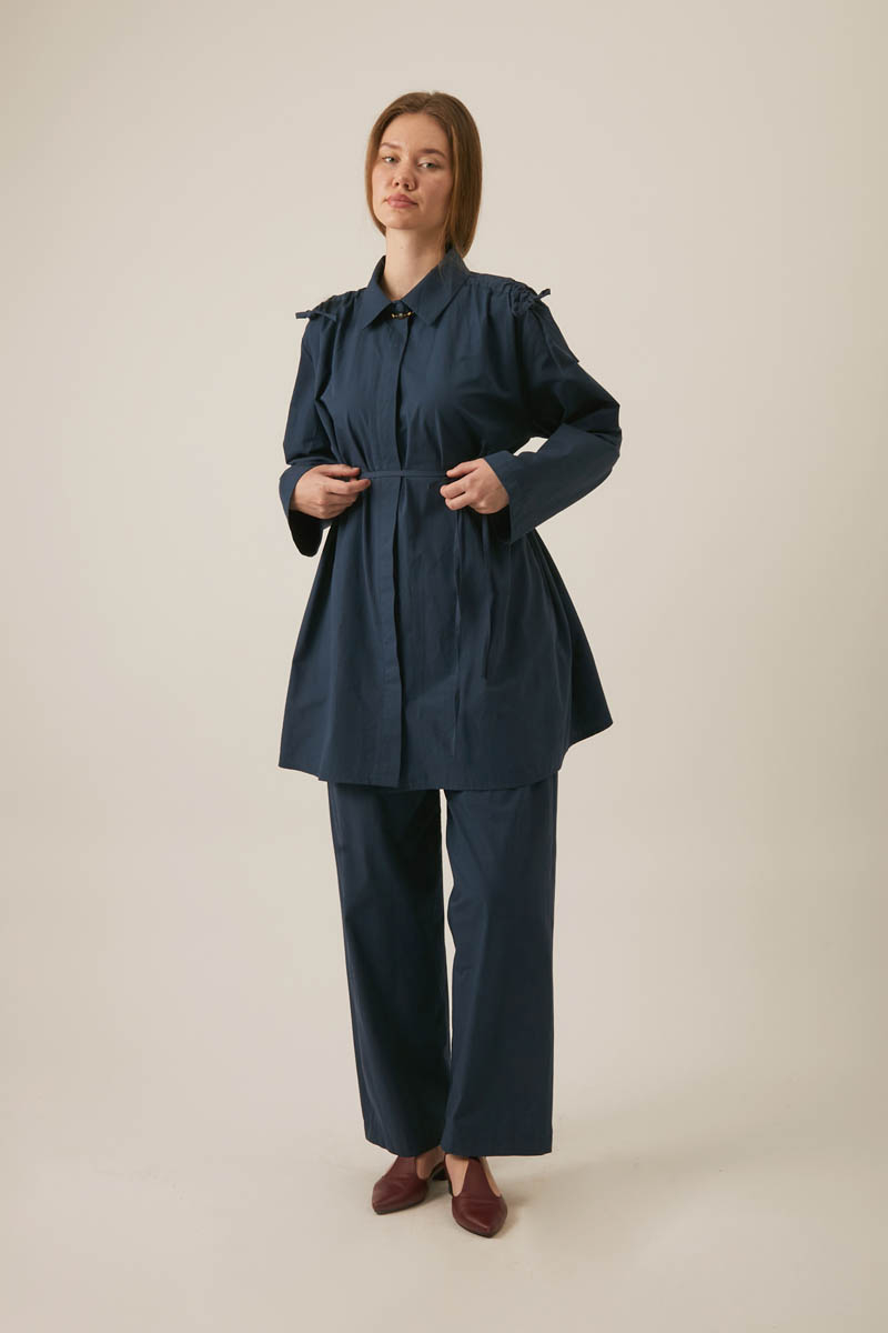 Omuzu Büzgü Detaylı Pantolon Takım Lacivert