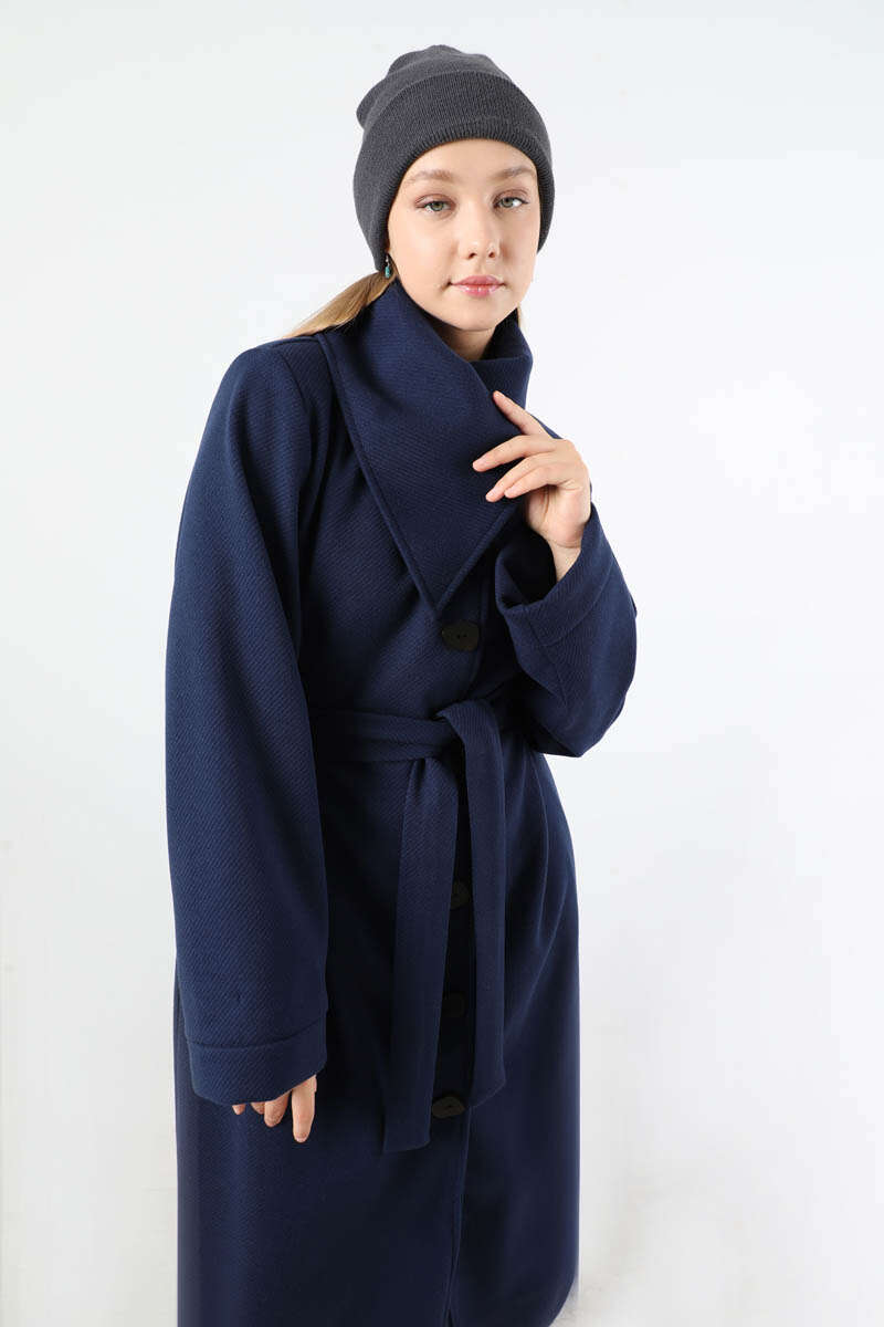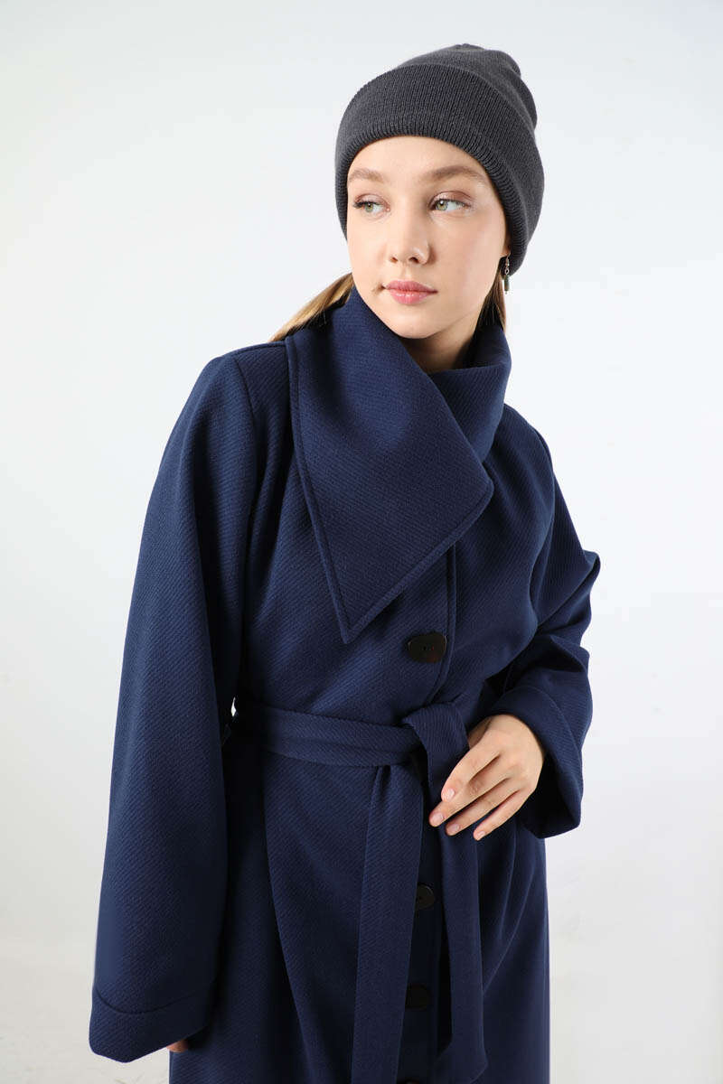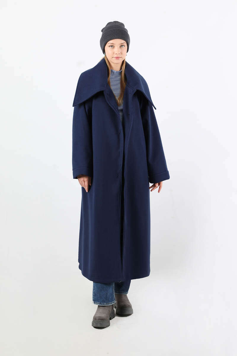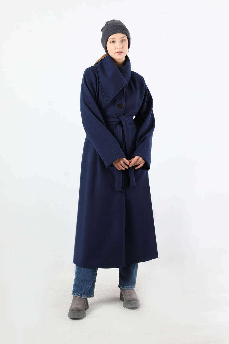 Geniş Dik Yakalı Uzun Kaban Lacivert. Leopar desenli düğme detaylıdır. Duble kolludur. Geniş ve dik yakalıdır. Kuşaklıdır. Astarlıdır. Günlük kullanım ve özel günlerinizde tercih edebilirsiniz.
