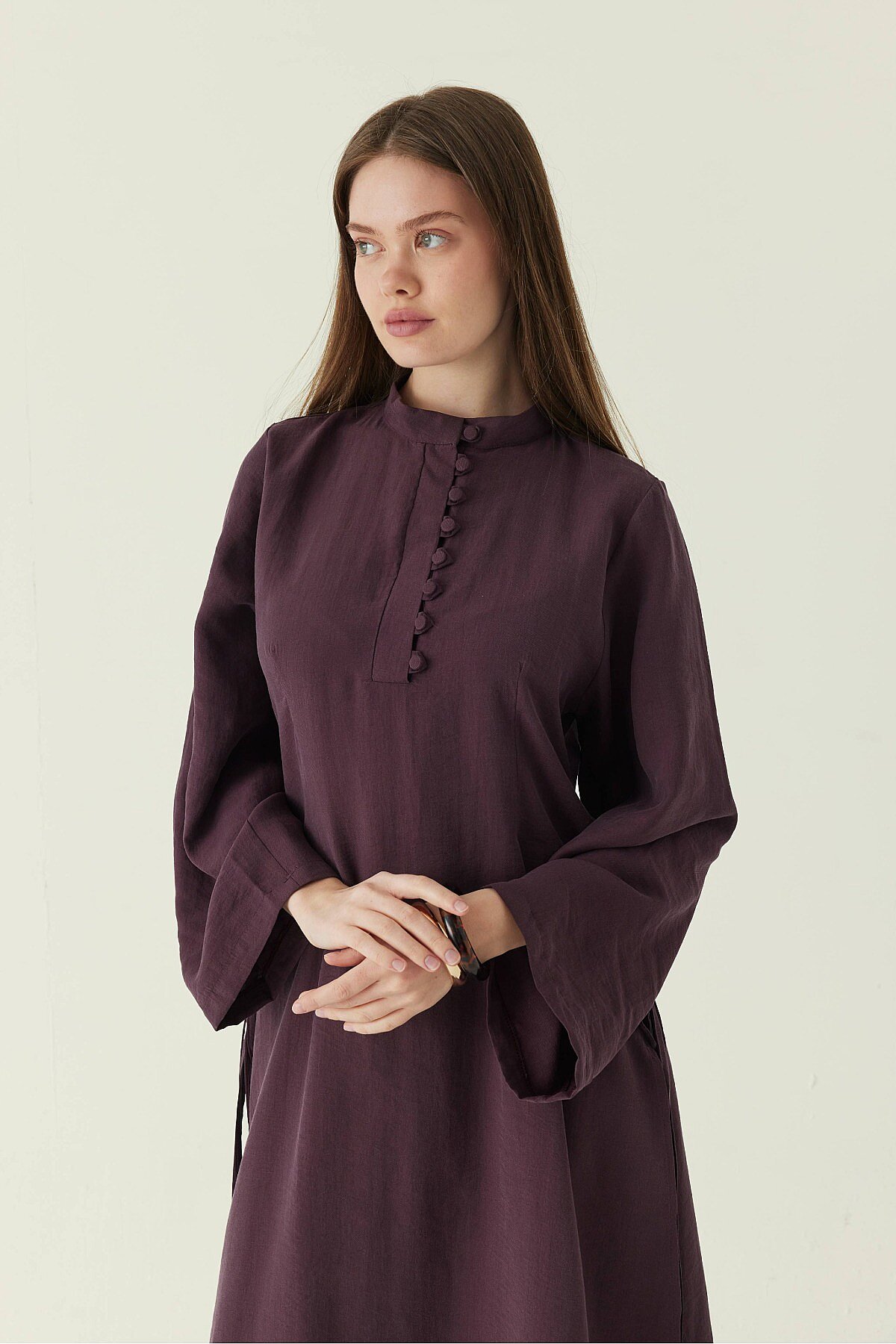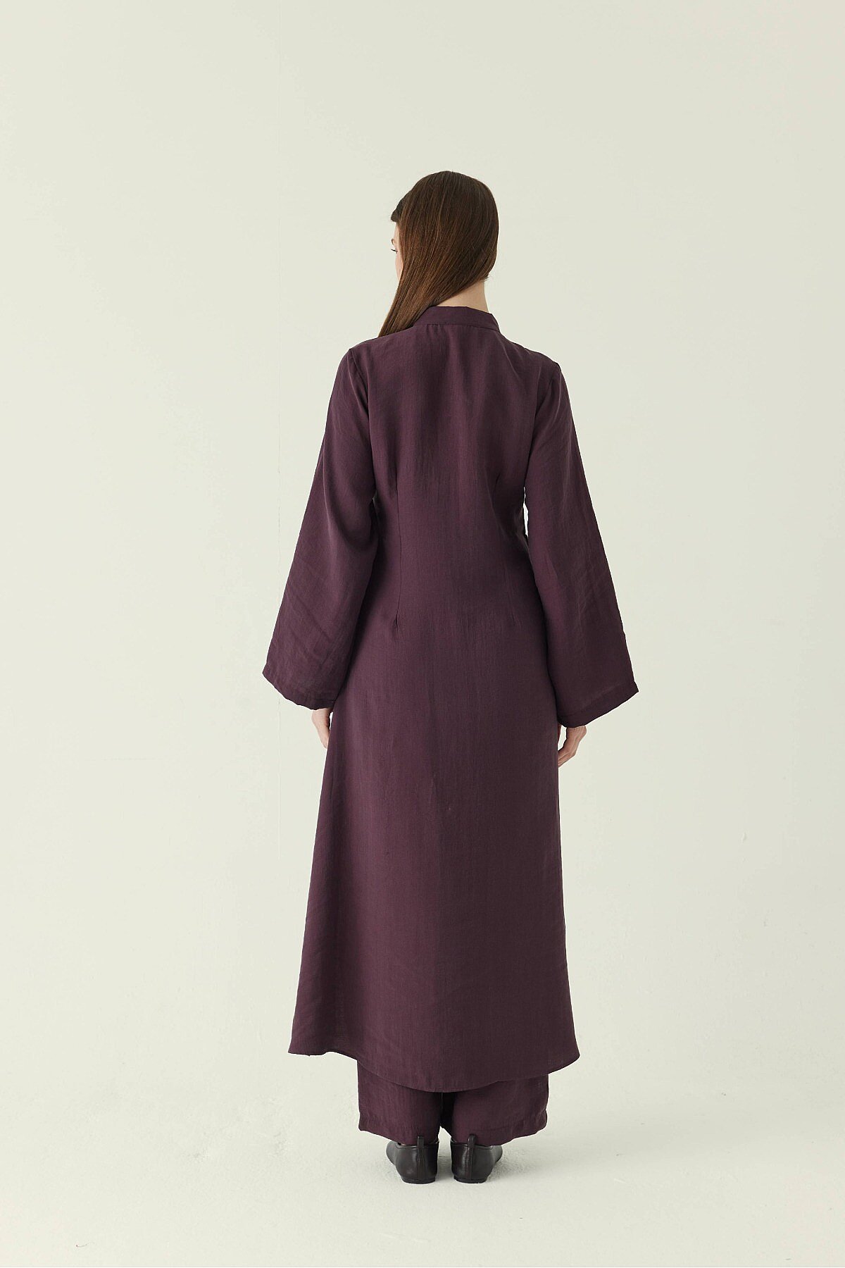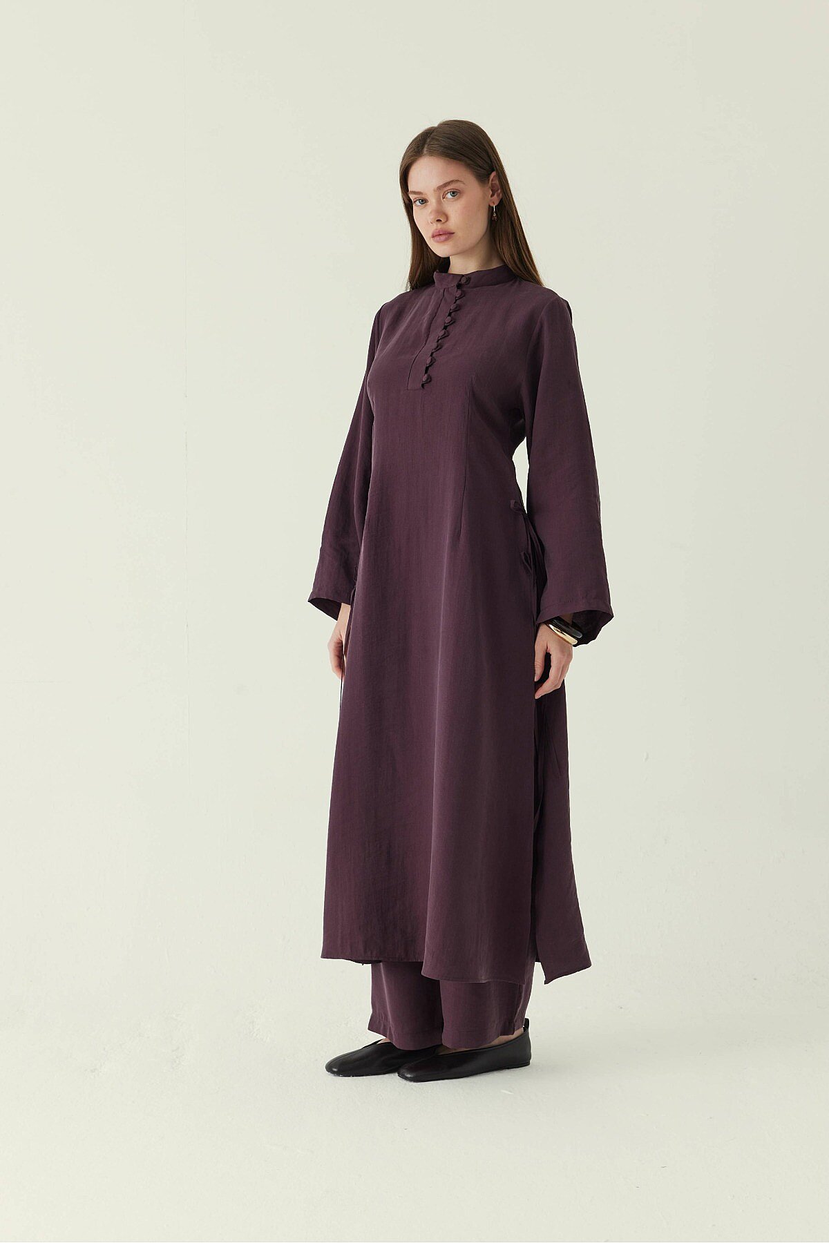 Geniş Kollu Düğmeli Tunik Takım Mürdüm