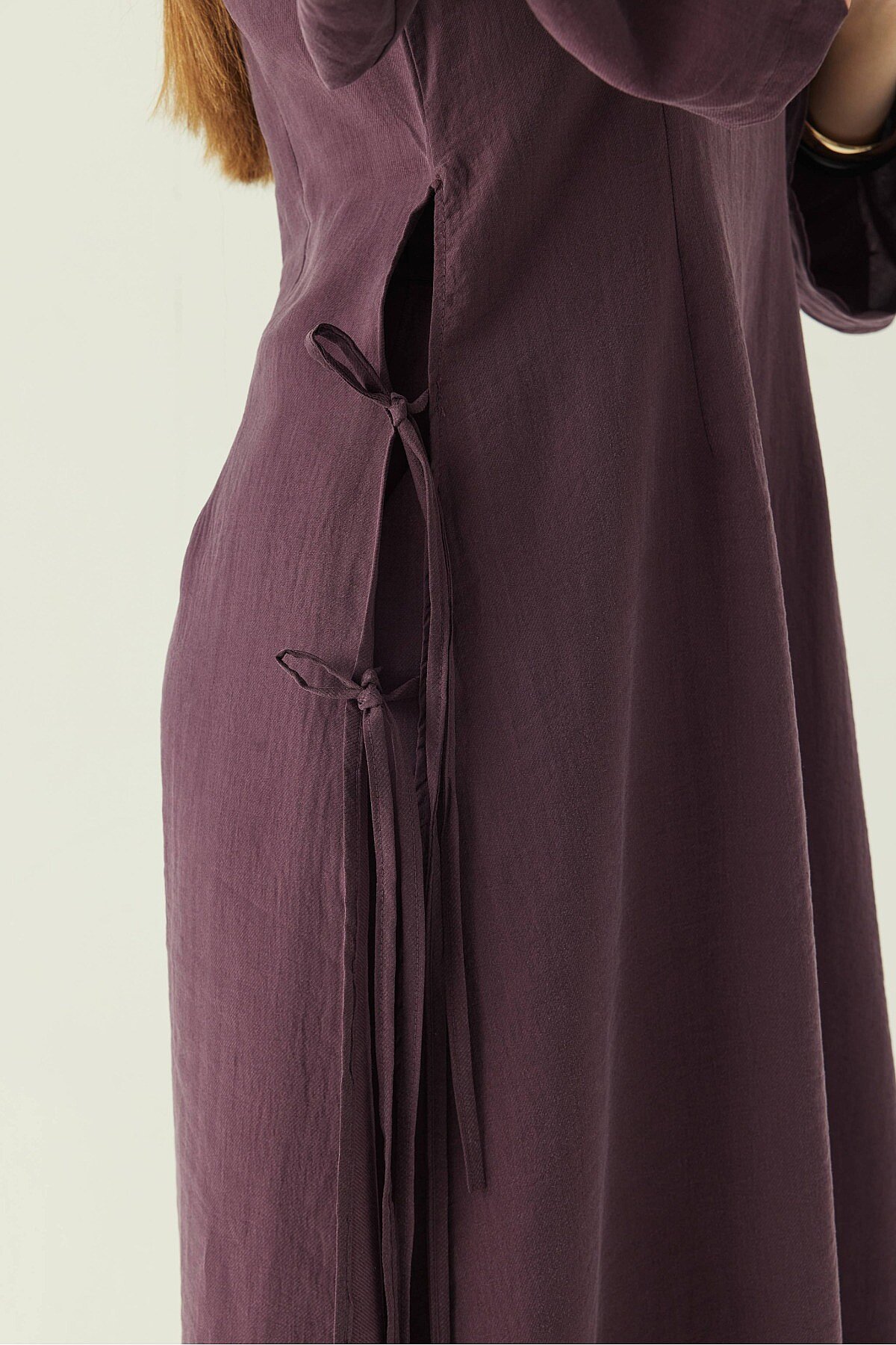 Doğal dokulu kumaşı ve zarif detaylarıyla öne çıkan Geniş Kollu Düğmeli Elbise, sade ama karakterli bir siluet sunar. Hakim yaka formu tasarıma dengeli bir duruş kazandırırken, brit düğme detayları modele ince bir zarafet katar. Yandan bağlama detayı ve yırtmaçlı yapısı tasarıma hareket kazandırır. Günlük kullanımdan özel gün kombinlerine kadar farklı stillerle kolayca uyum sağlar.