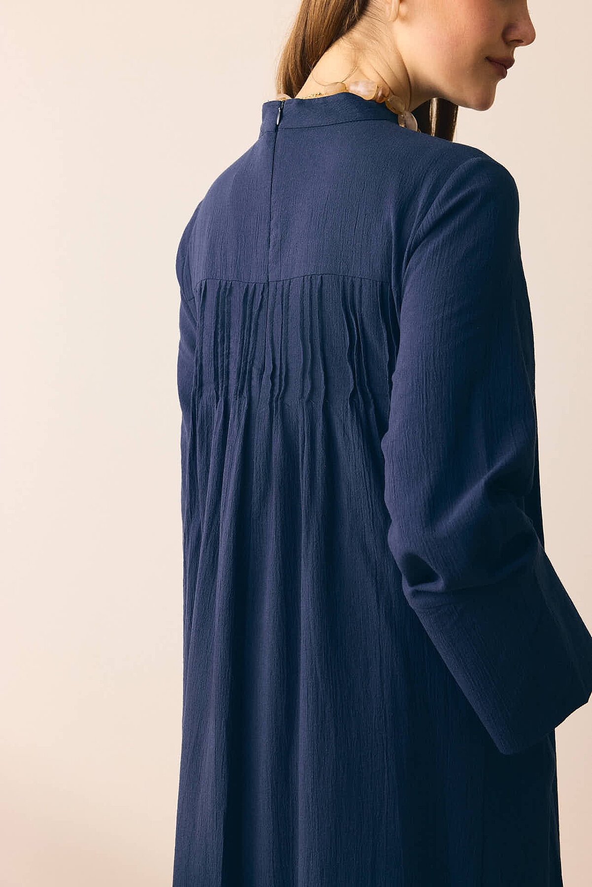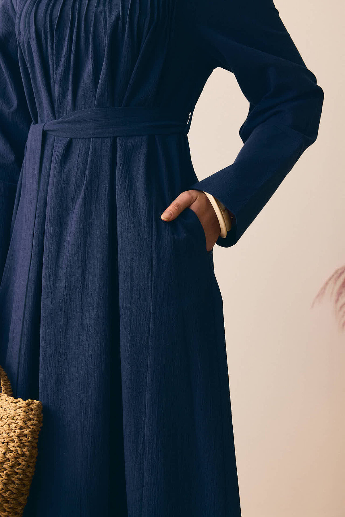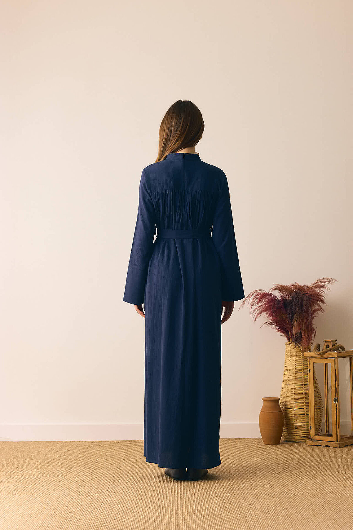 Geniş Manşetli Şile Bezi Elbise Lacivert
