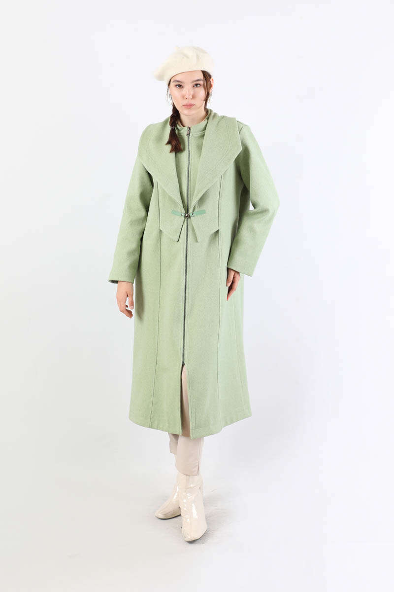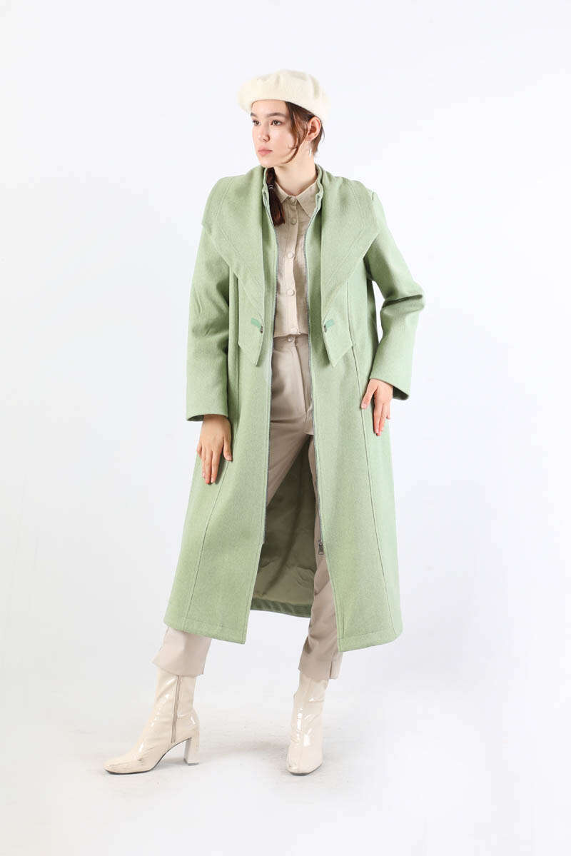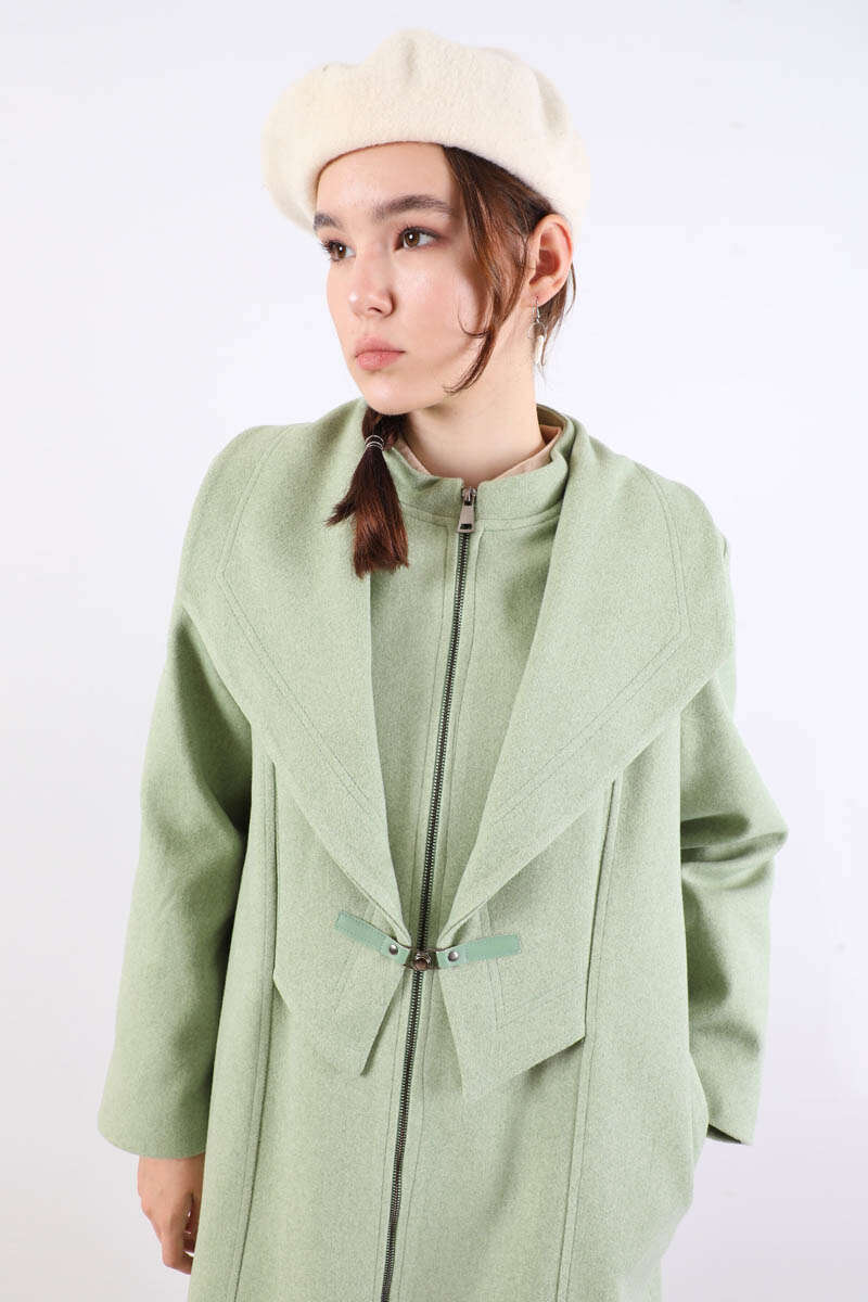 Geniş Yaka Önden Tokalı Kaban Mint. Ön yelek kapama detaylıdır. Çıtçıt kapamalıdır. Geniş yakalıdır. Önden fermuarlıdır. Yandan ceplidir. Astarlıdır. Günlük kullanım ve özel günlerinizde tercih edebilirsiniz.