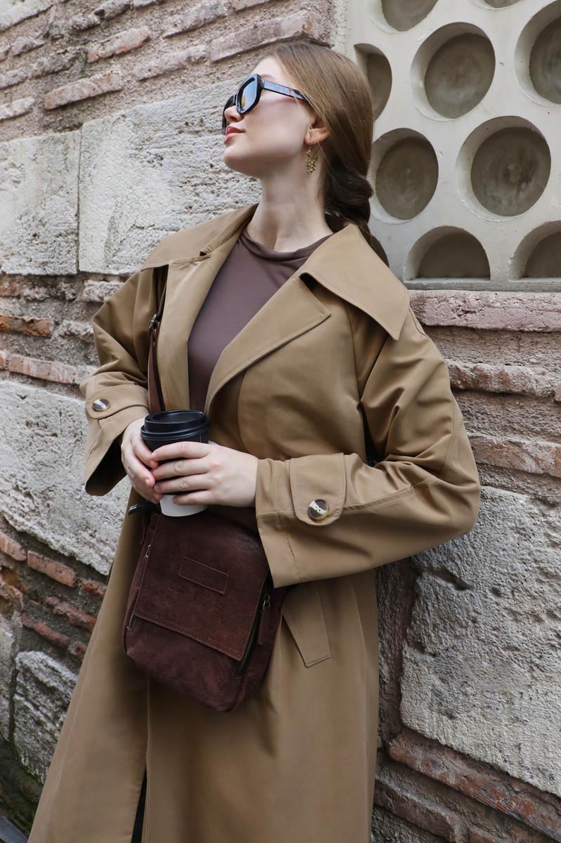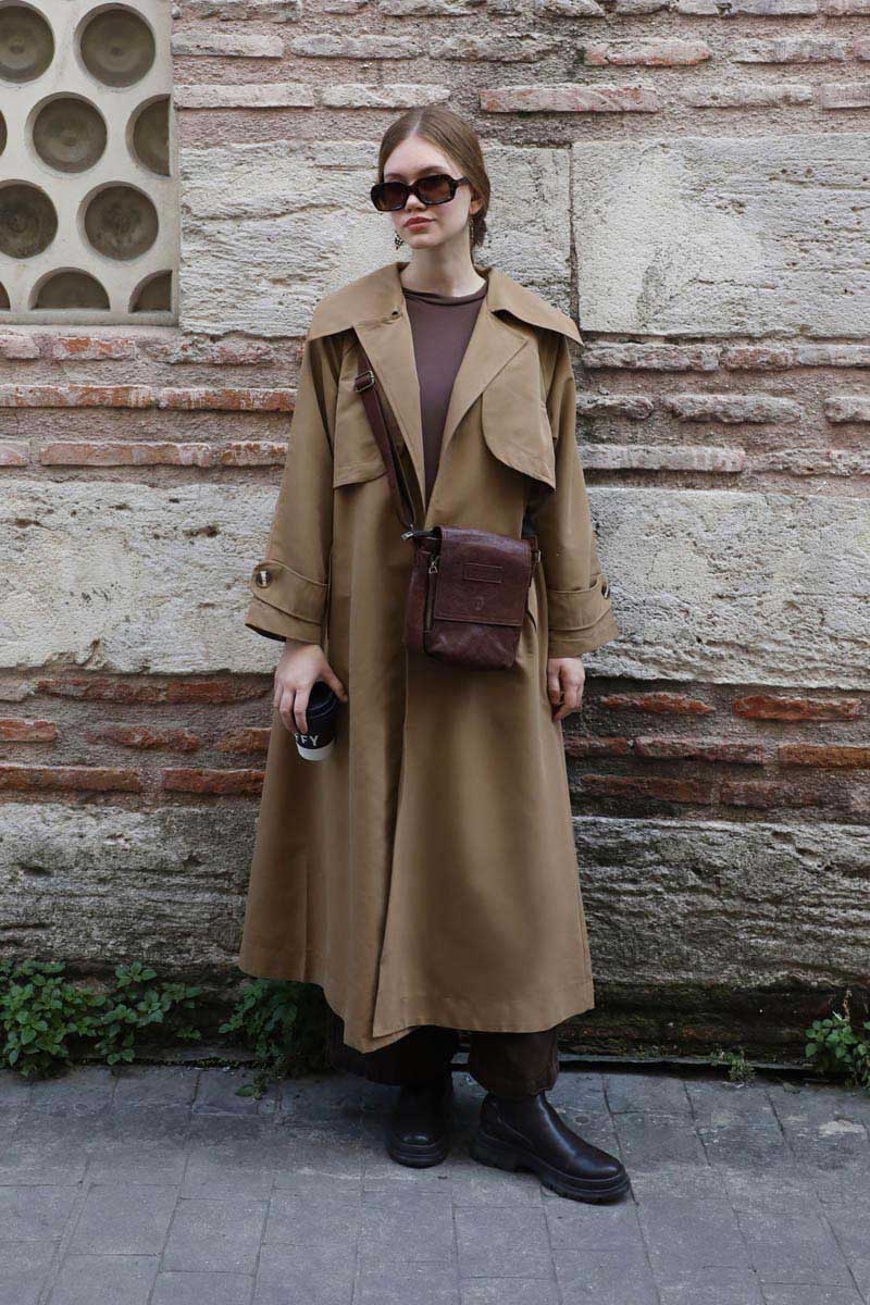 Geniş Yaka Trençkot Camel