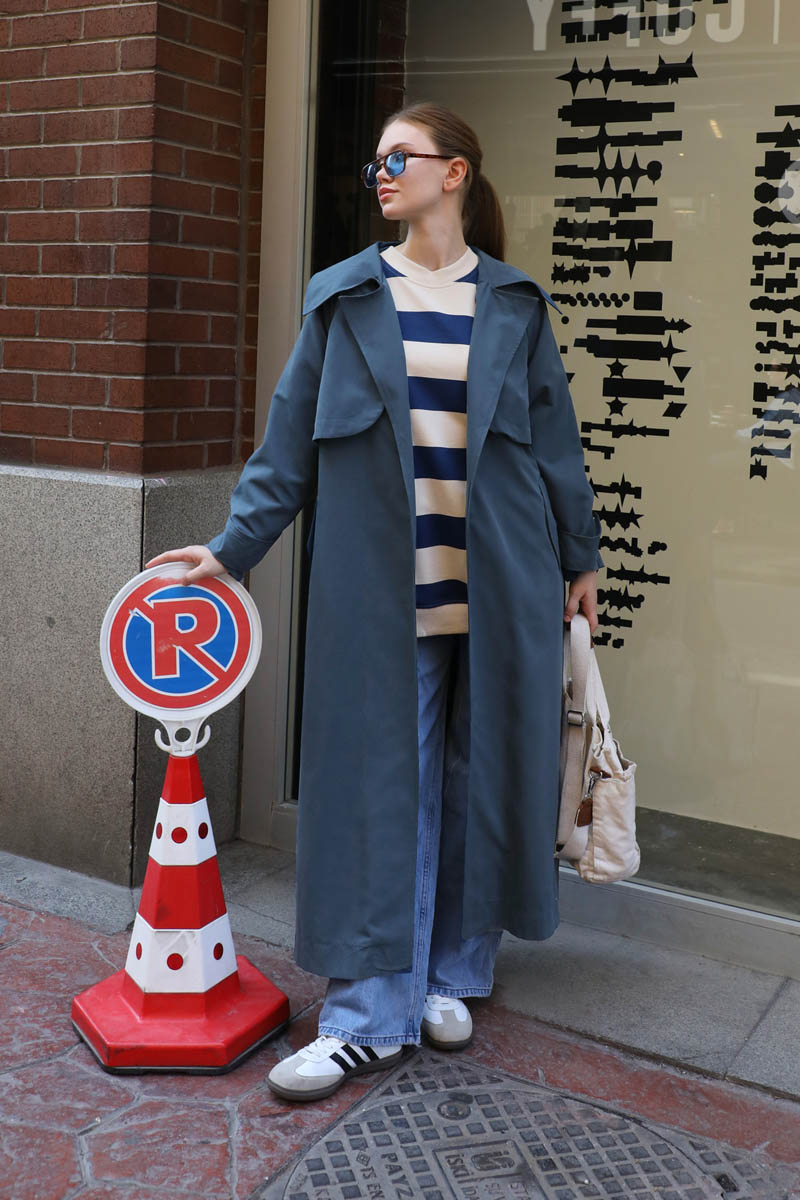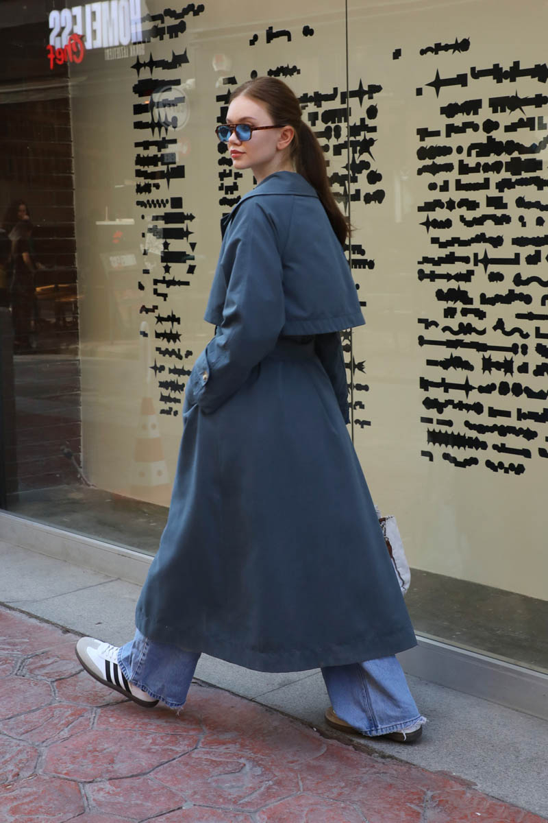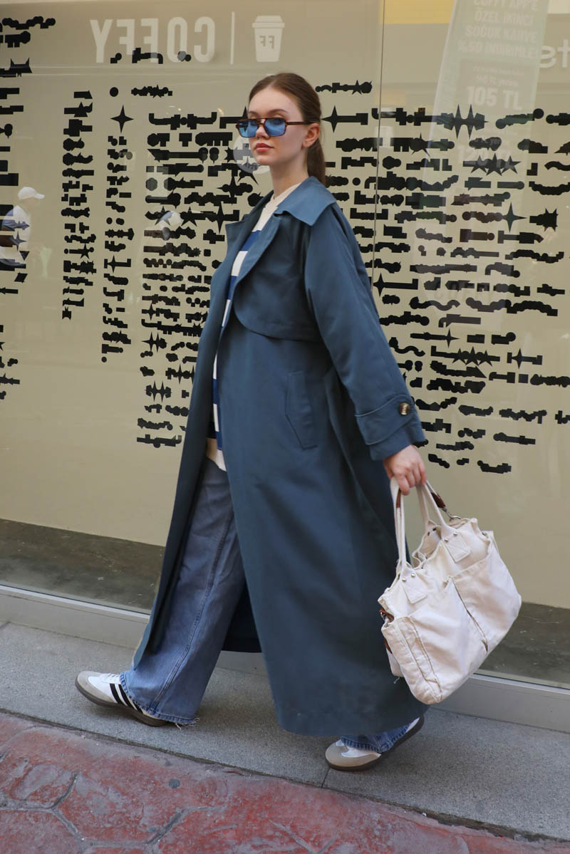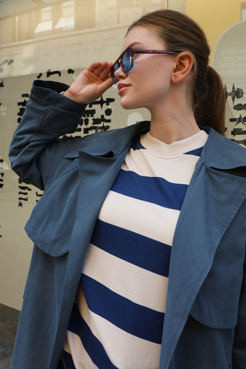 Geniş Yaka Trençkot Lacivert. Geniş yaka ve kruvaze detayldır, rüzgarlıklıdır, reglan kolludur, bilekten apolet ve düğme detayldır, Ceplidir, astarlıdır, kuşaklıdır. Günlük kullanım ve özel günlerinizde tercih edebilirsiniz.