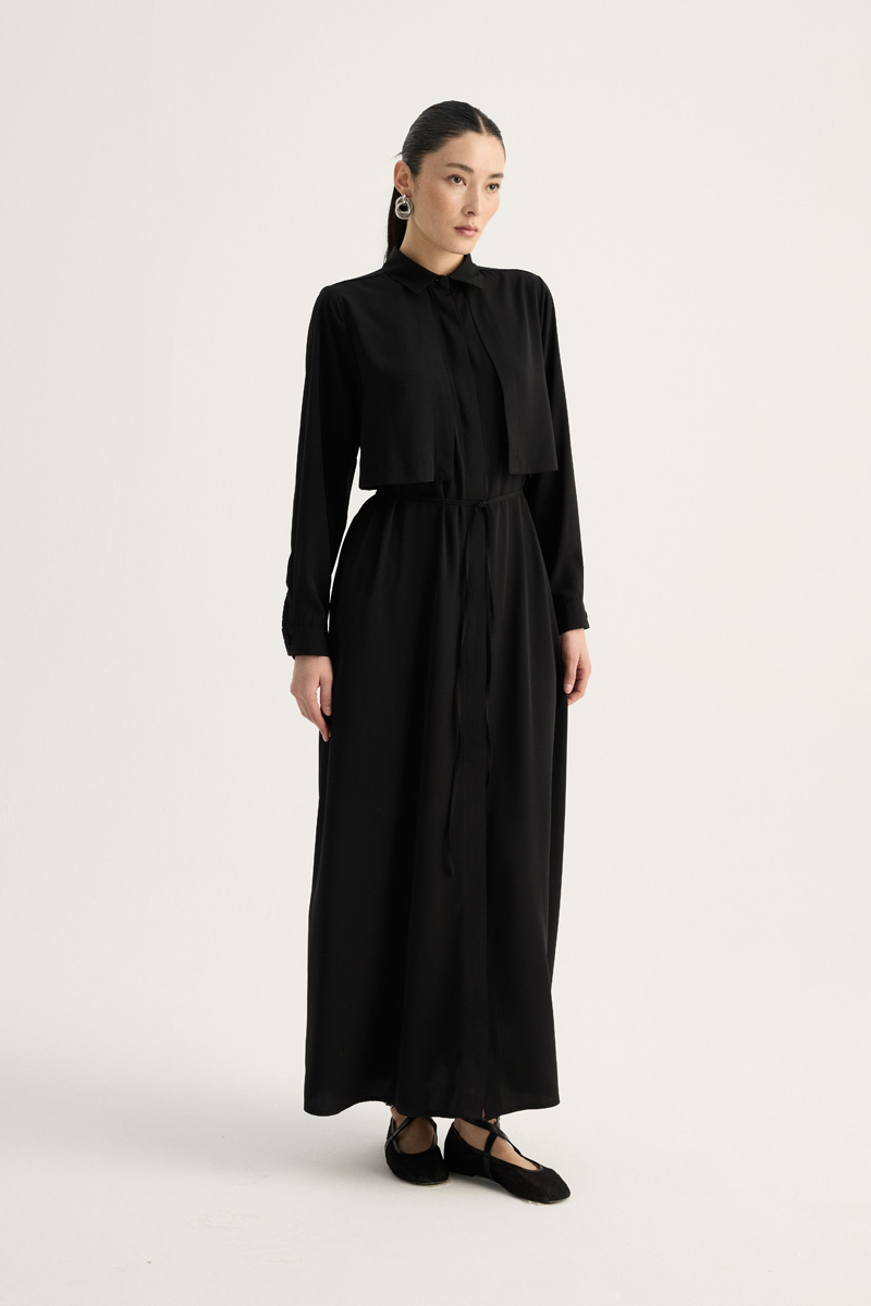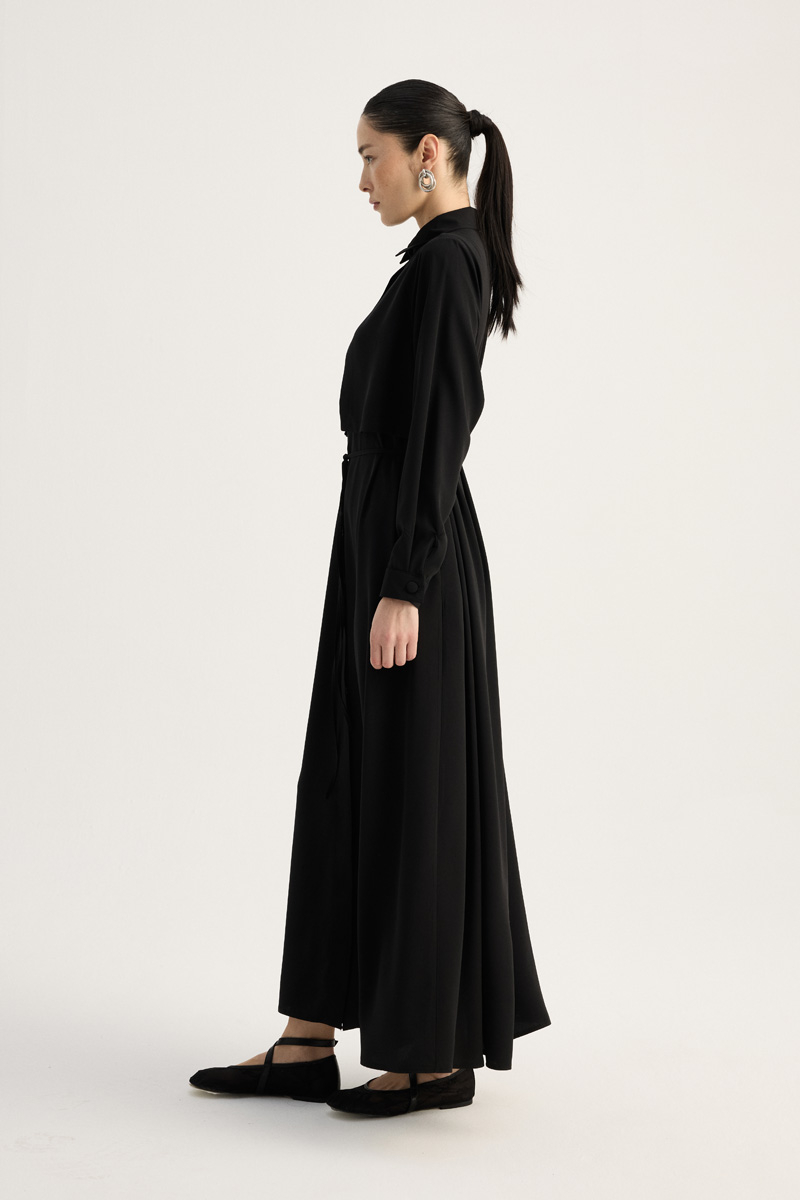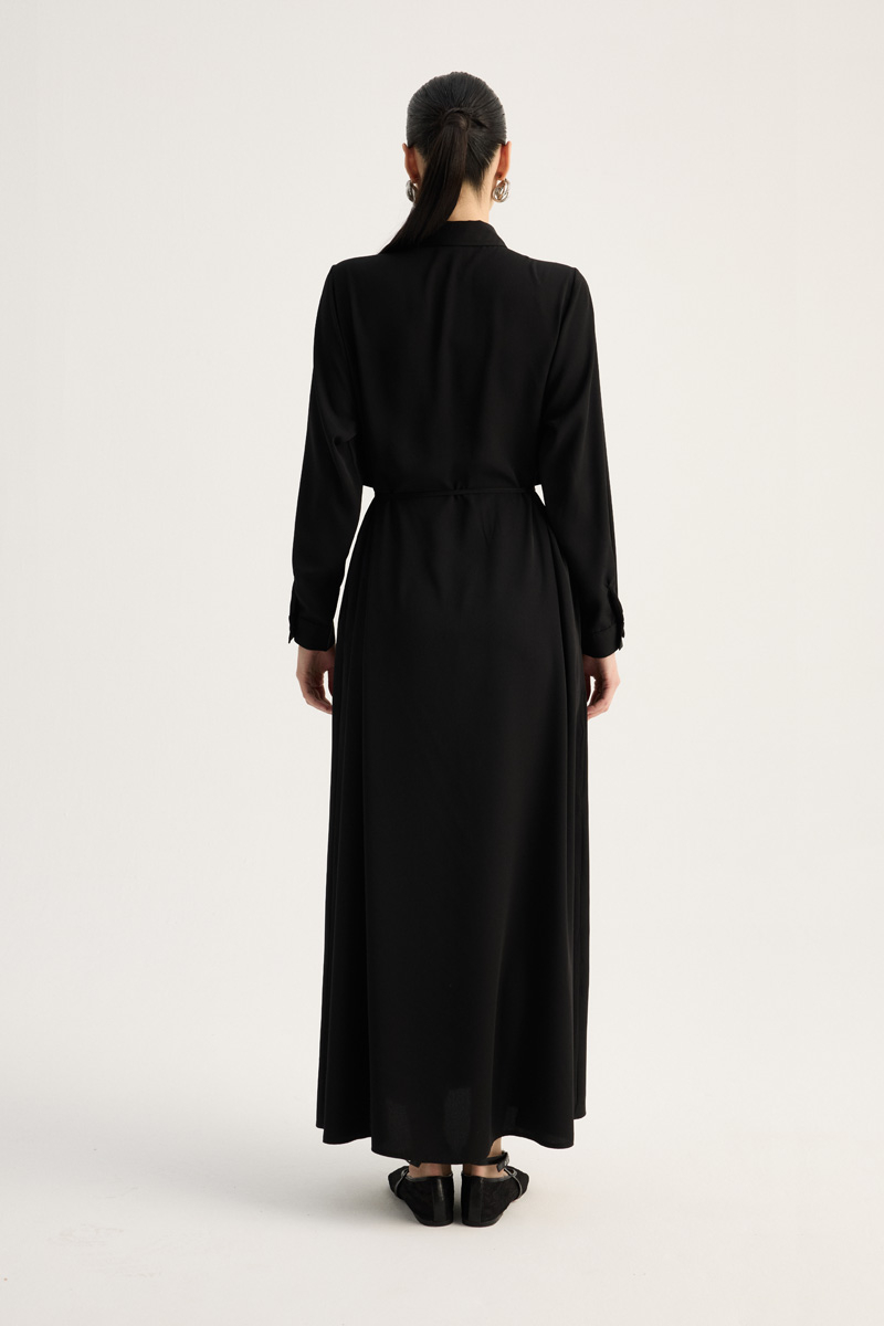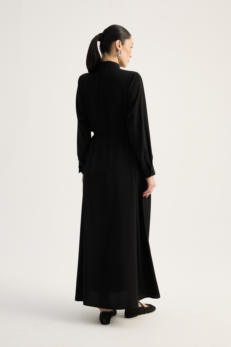 Medine İpeği Elbise Siyah. Gömlek yakalıdır. Gizli düğmelidir. Rüzgarlık detaylıdır. Yandan ceplidir. İnce kuşaklıdır. Günlük kullanım ve özel günlerinizde tercih edebilirsiniz.