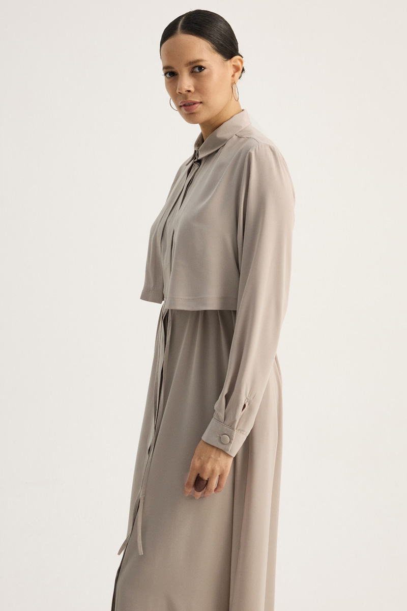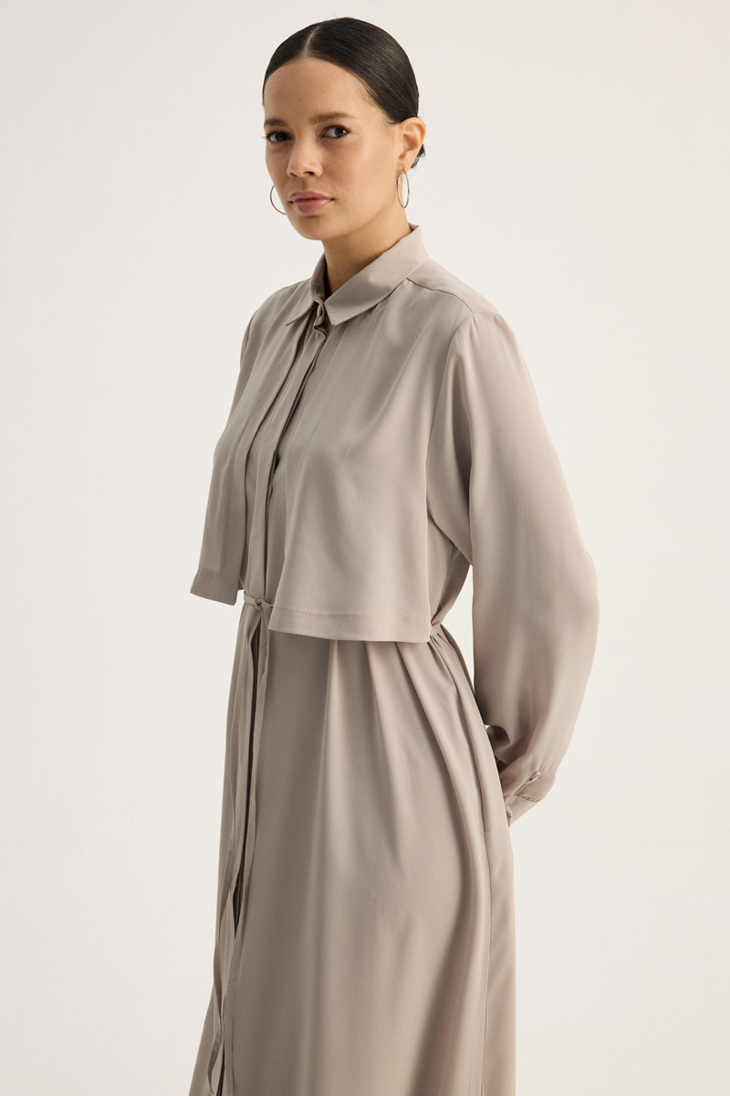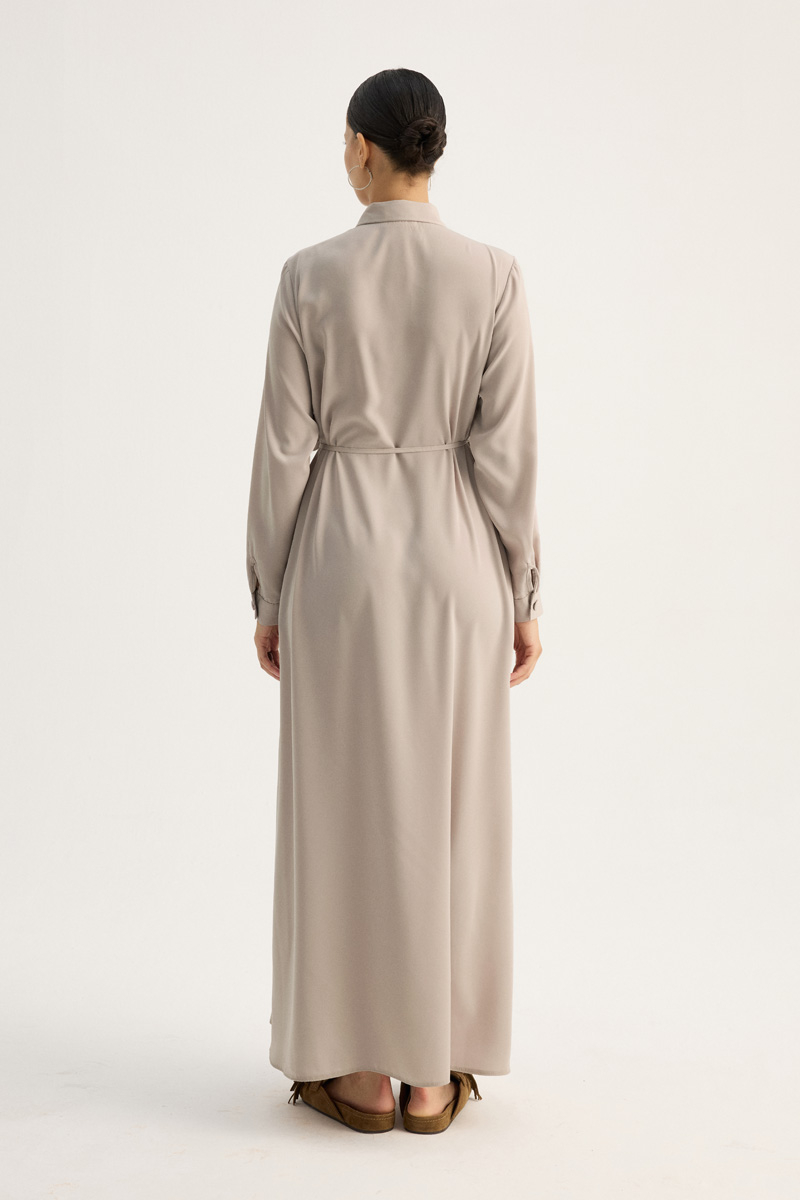 Medine İpeği Elbise Taş. Gömlek yakalıdır. Gizli düğmelidir. Rüzgarlık detaylıdır. Yandan ceplidir. İnce kuşaklıdır. Günlük kullanım ve özel günlerinizde tercih edebilirsiniz.