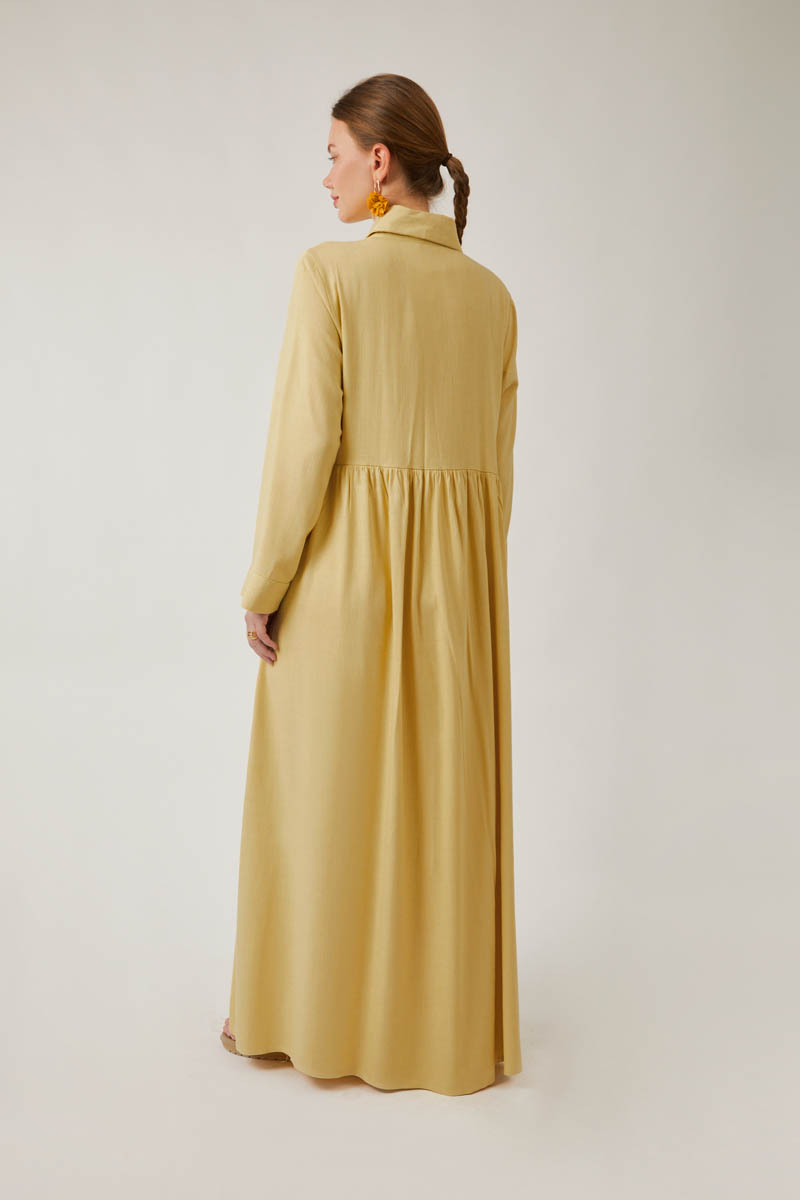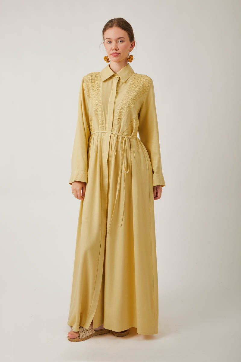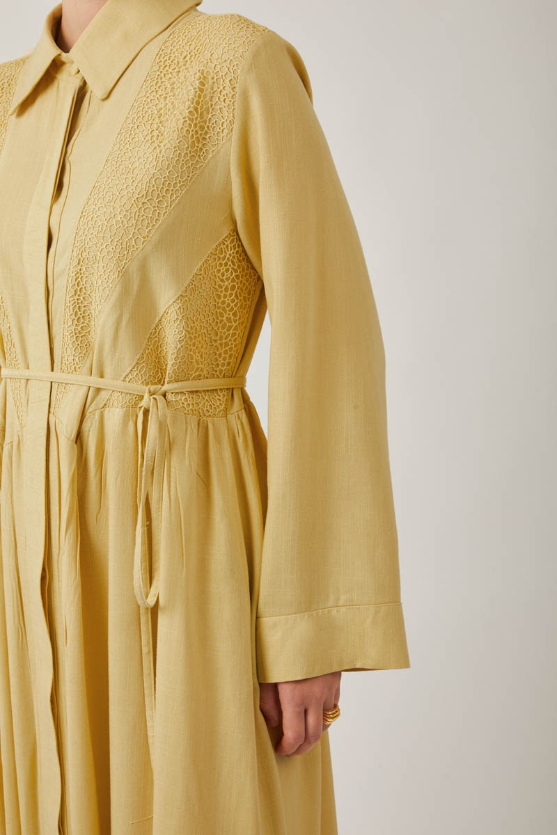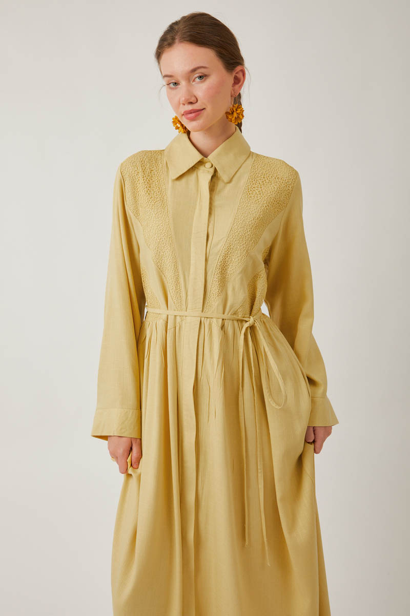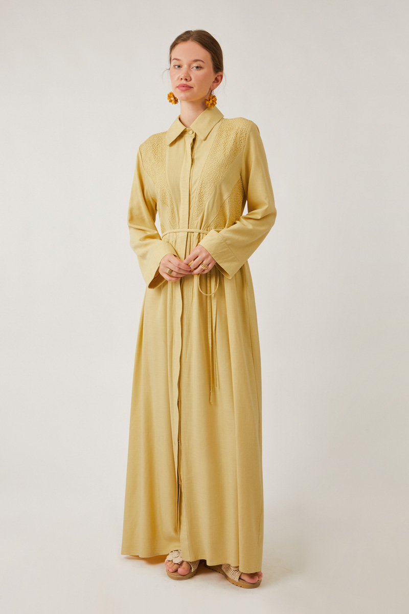 Gizli Düğmeli Dantelli Elbise Tereyağı Sarısı