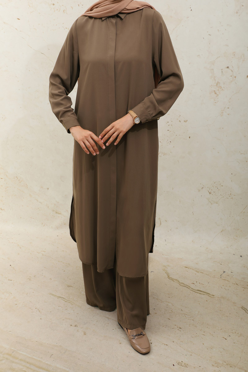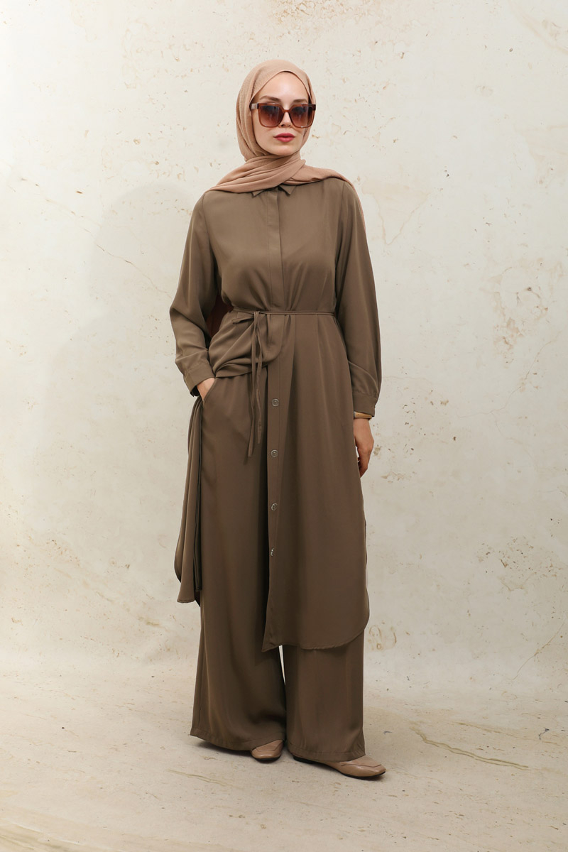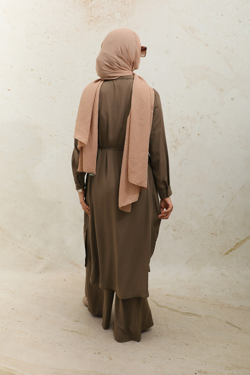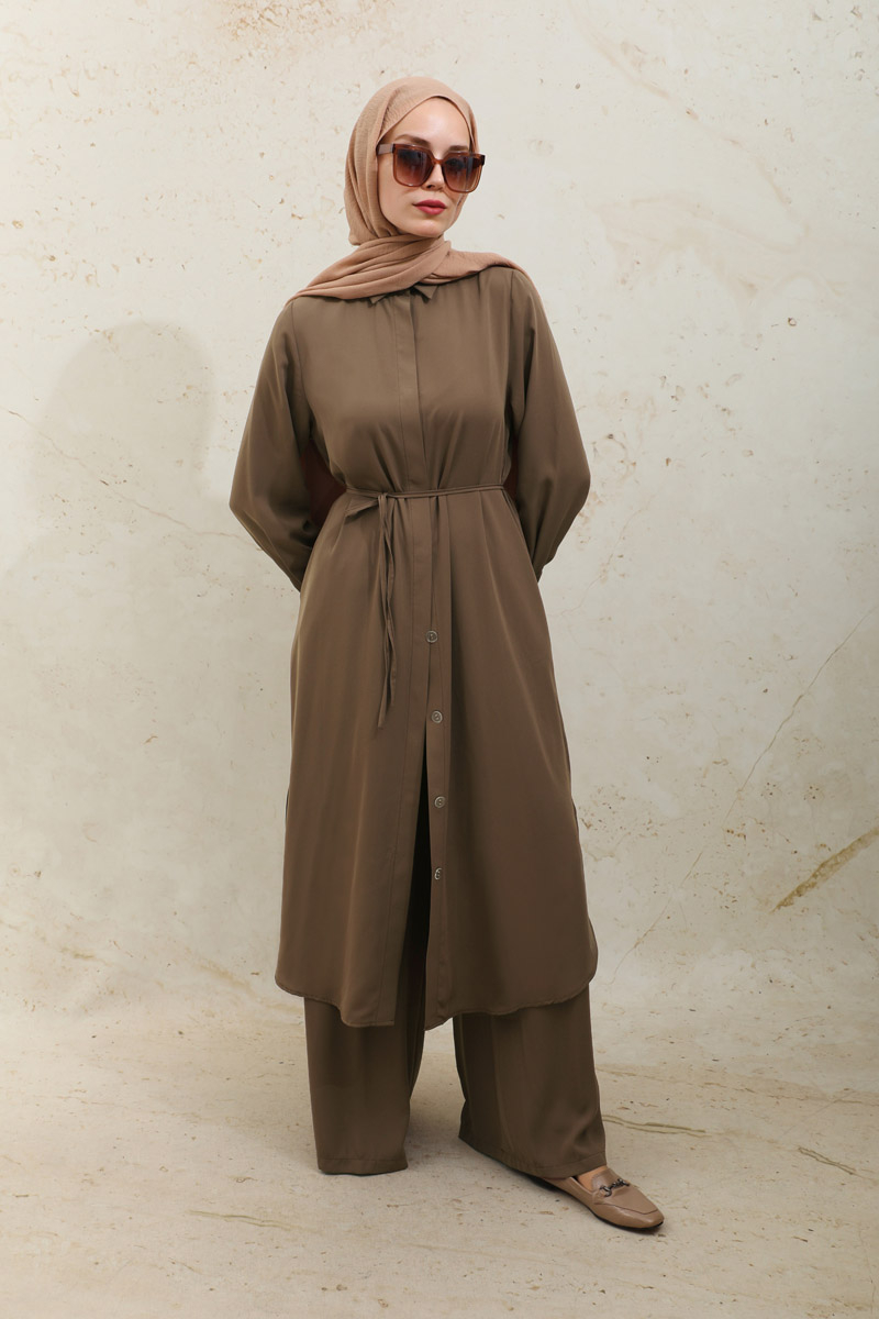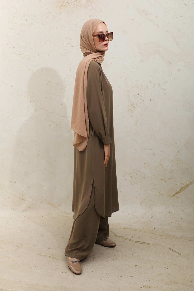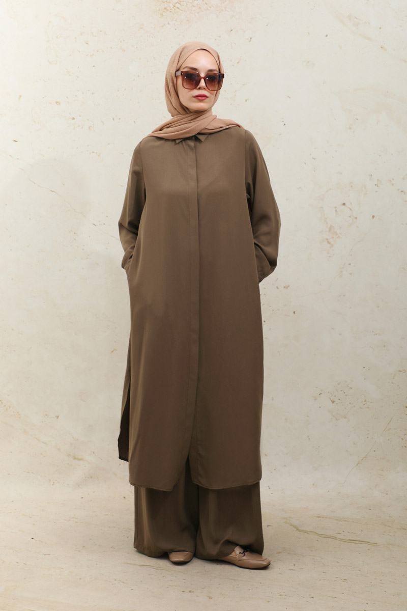 Medine İpeği Tunik Takım Kahverengi