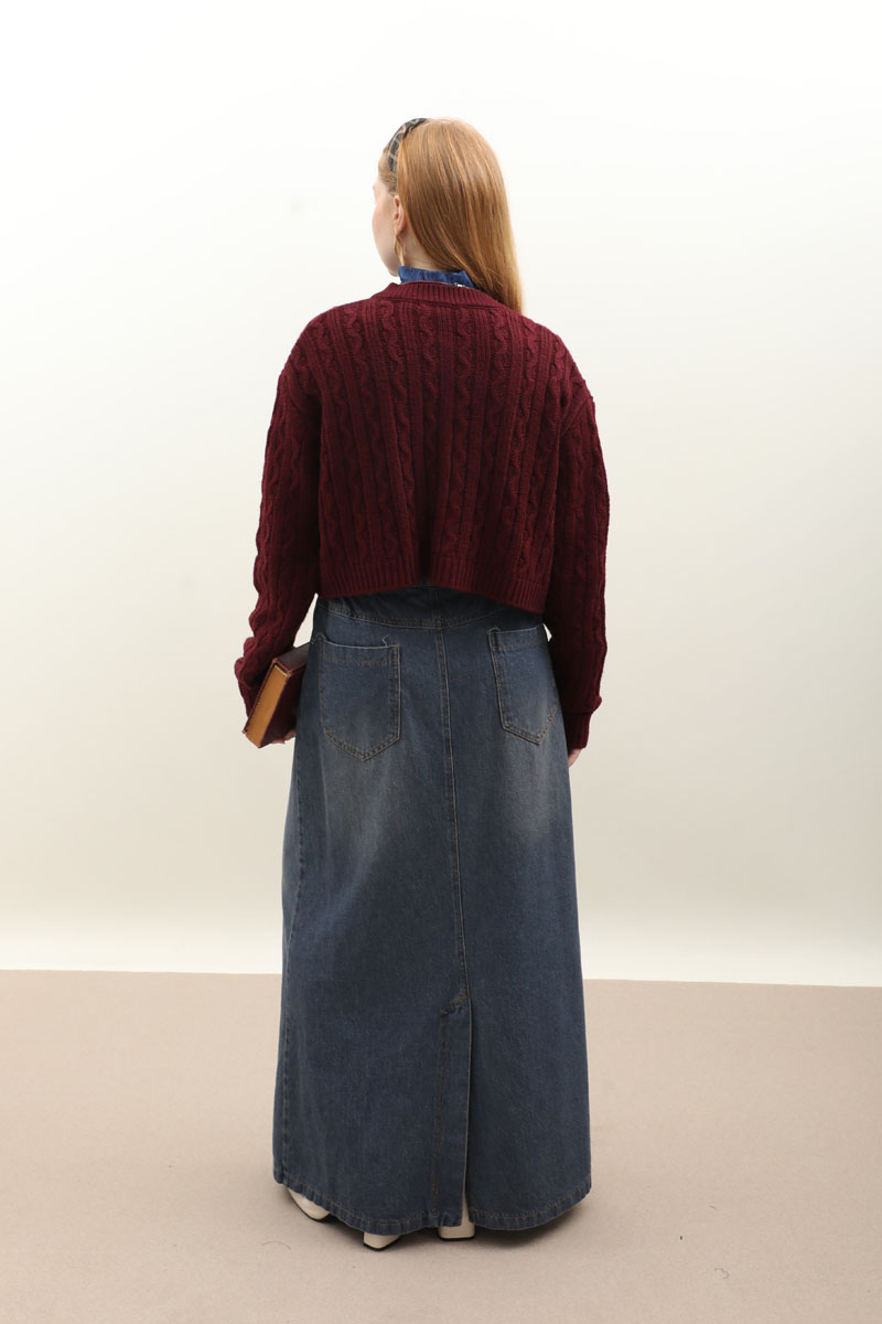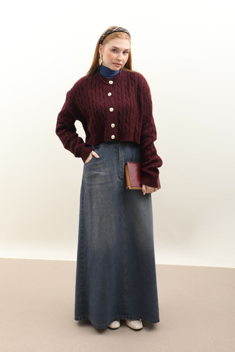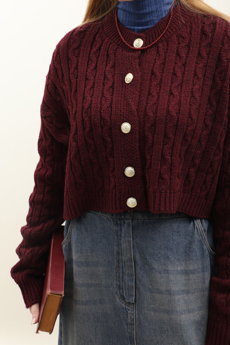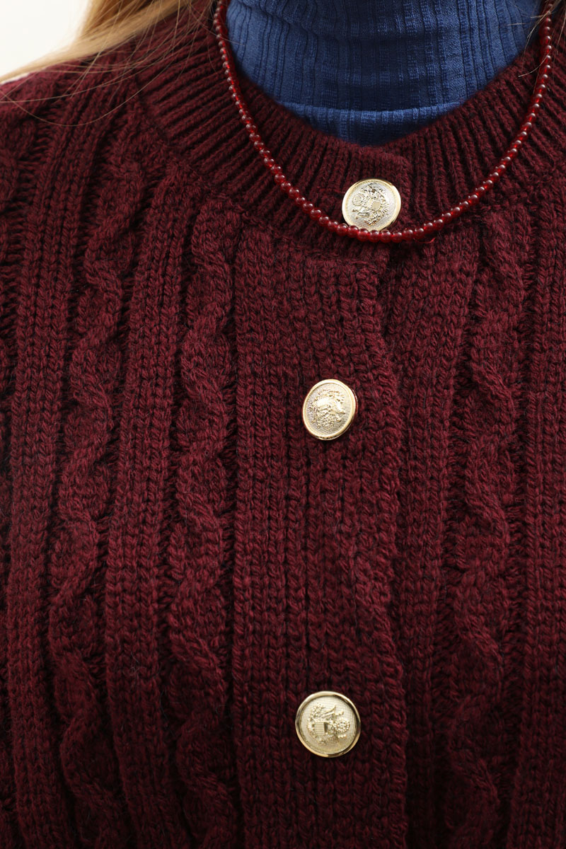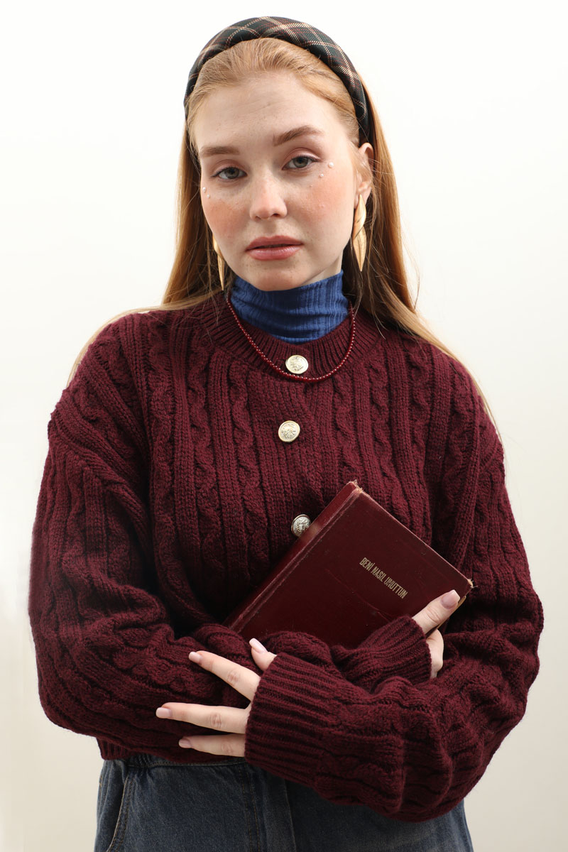 Gold Düğmeli Kısa Hırka Bordo
