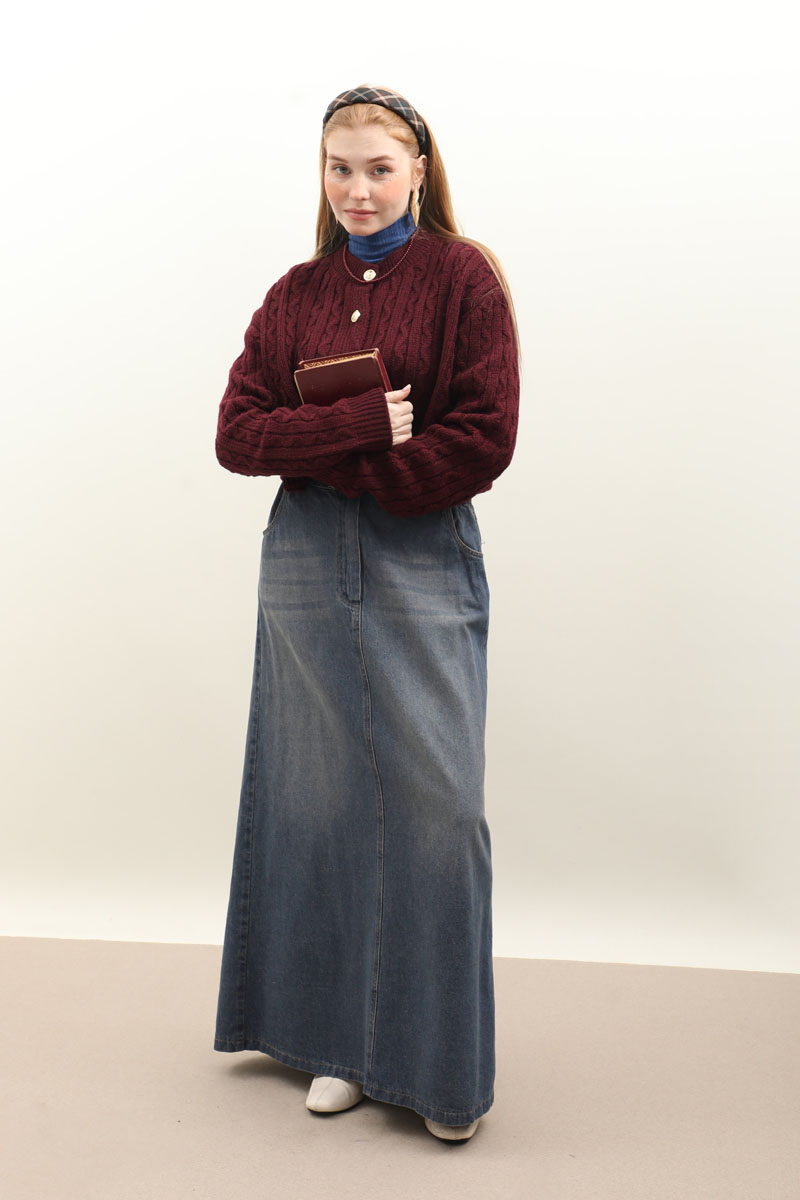 Gold Düğmeli Kısa Hırka Bordo. Bisiklet yaka, düşük omuzlu, yakası manşeti ve etek ucu ribanalıdır, önden gold düğmelidir. Örgü şeklinde örme kumaşlıdır. Etek, elbise ve pantolon üzerine tercih edilebilir. Kış aylarında tercih edebilirsiniz.