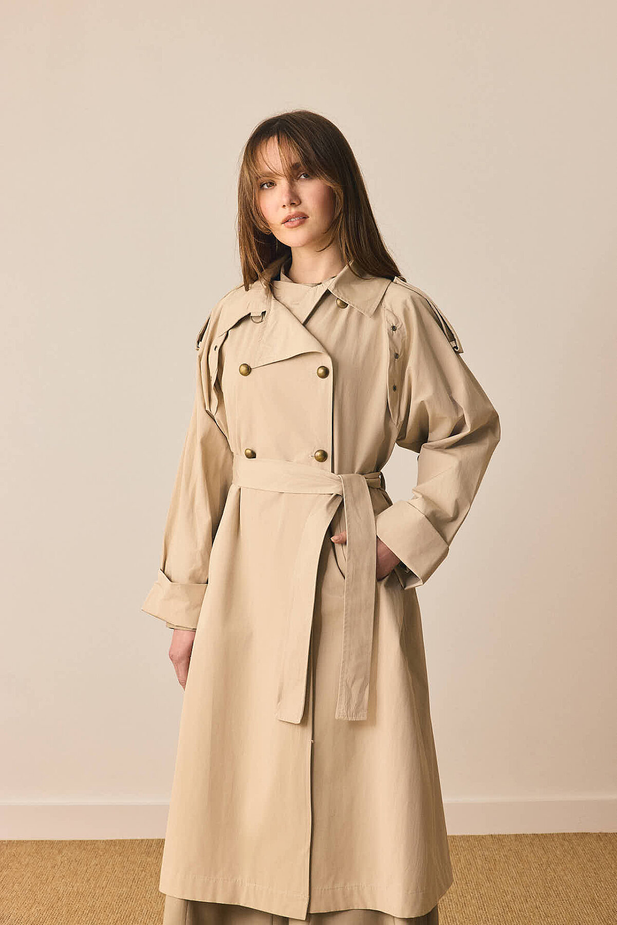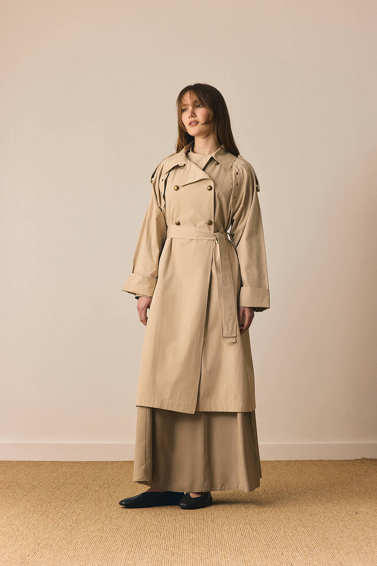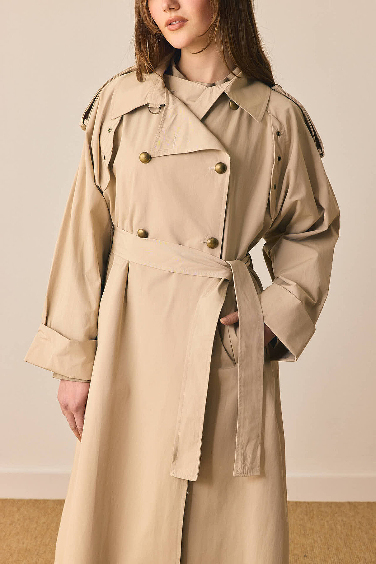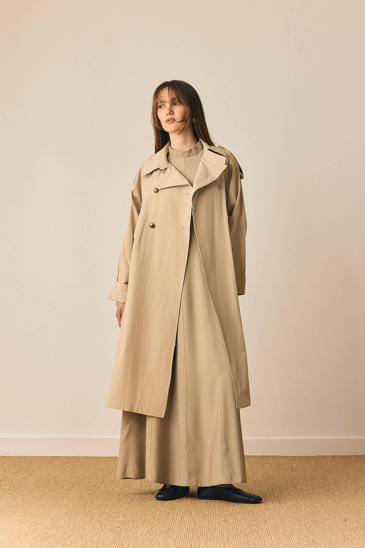 Klasik trençkot formunu modern ve güçlü detaylarla buluşturan Gold Düğmeli Trençkot, dengeli siluetiyle zamansız bir stil sunar. Gömlek yaka formu ve kruvaze kapaması modele karakterli bir duruş kazandırırken, gold top düğme detayları tasarıma dikkat çekici bir dokunuş ekler. Apolet detaylarıyla tamamlanan yapı, günlük şehir stilinden daha şık kombinlere kadar geniş bir kullanım alanı sunar.