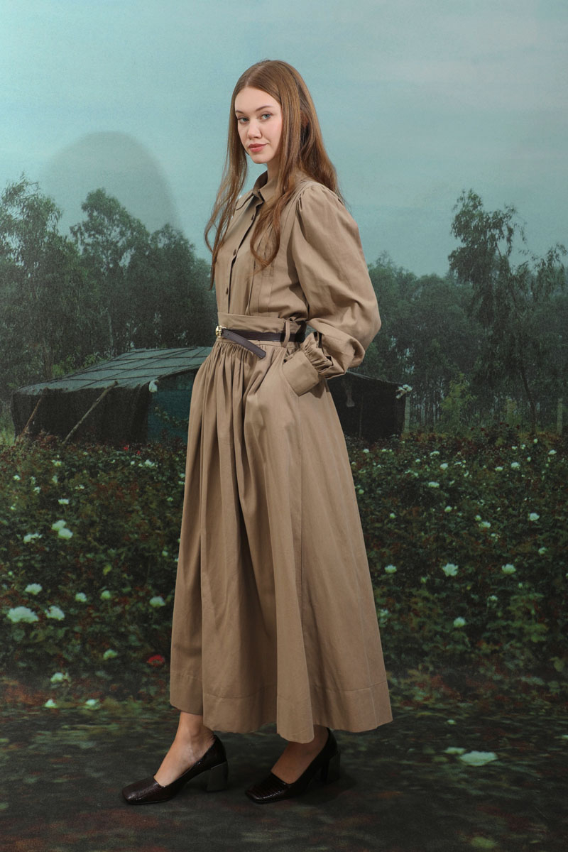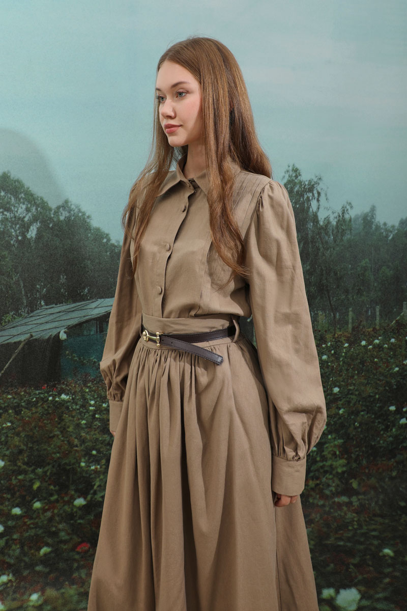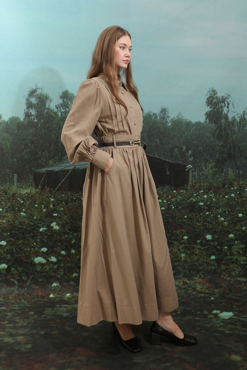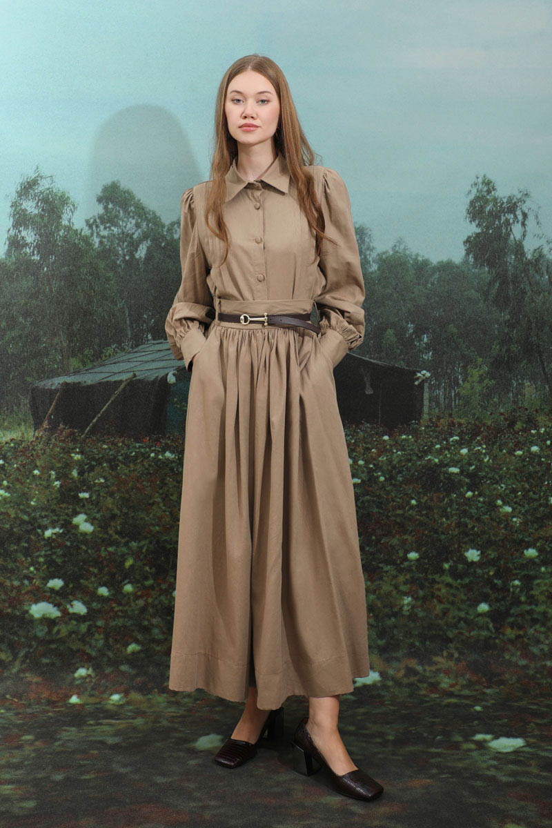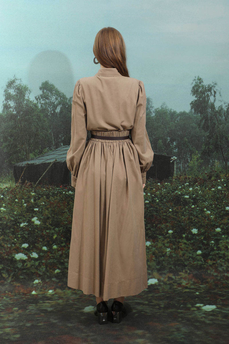 Gömlek Etek Takım Camel. Gömlek yakalıdır, kolları büzgülüdür, ön kısmı nervür detaylıdır. Etek arka kısmı lastiklidir, yandan ceplidir, kemerlidir, astarsızdır. Günlük ve özel günlerde kullanıma uygundur.
