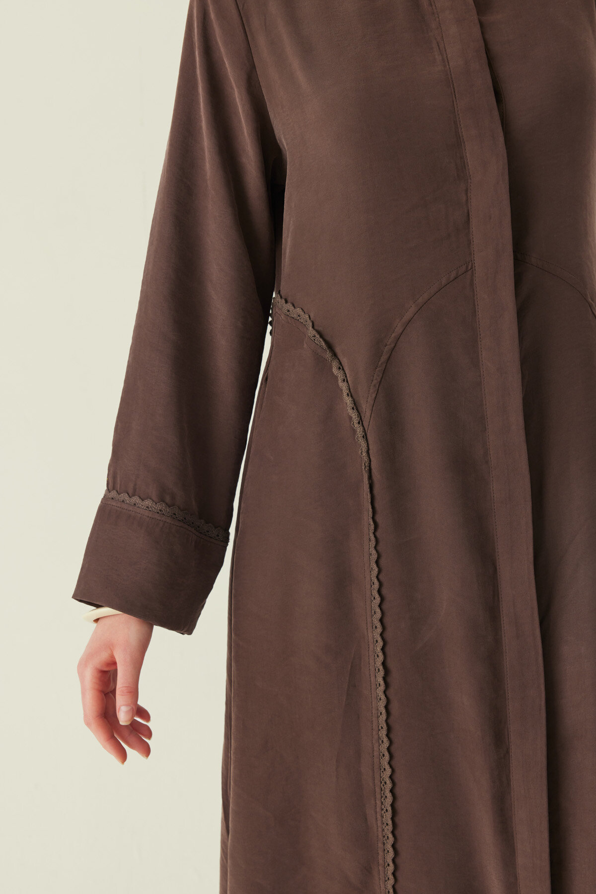 Dikey şerit dantel detaylıdır