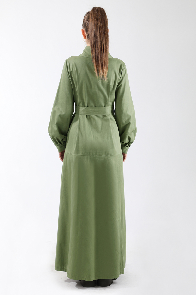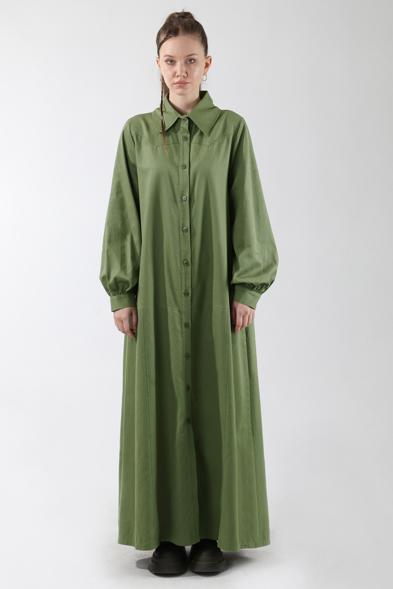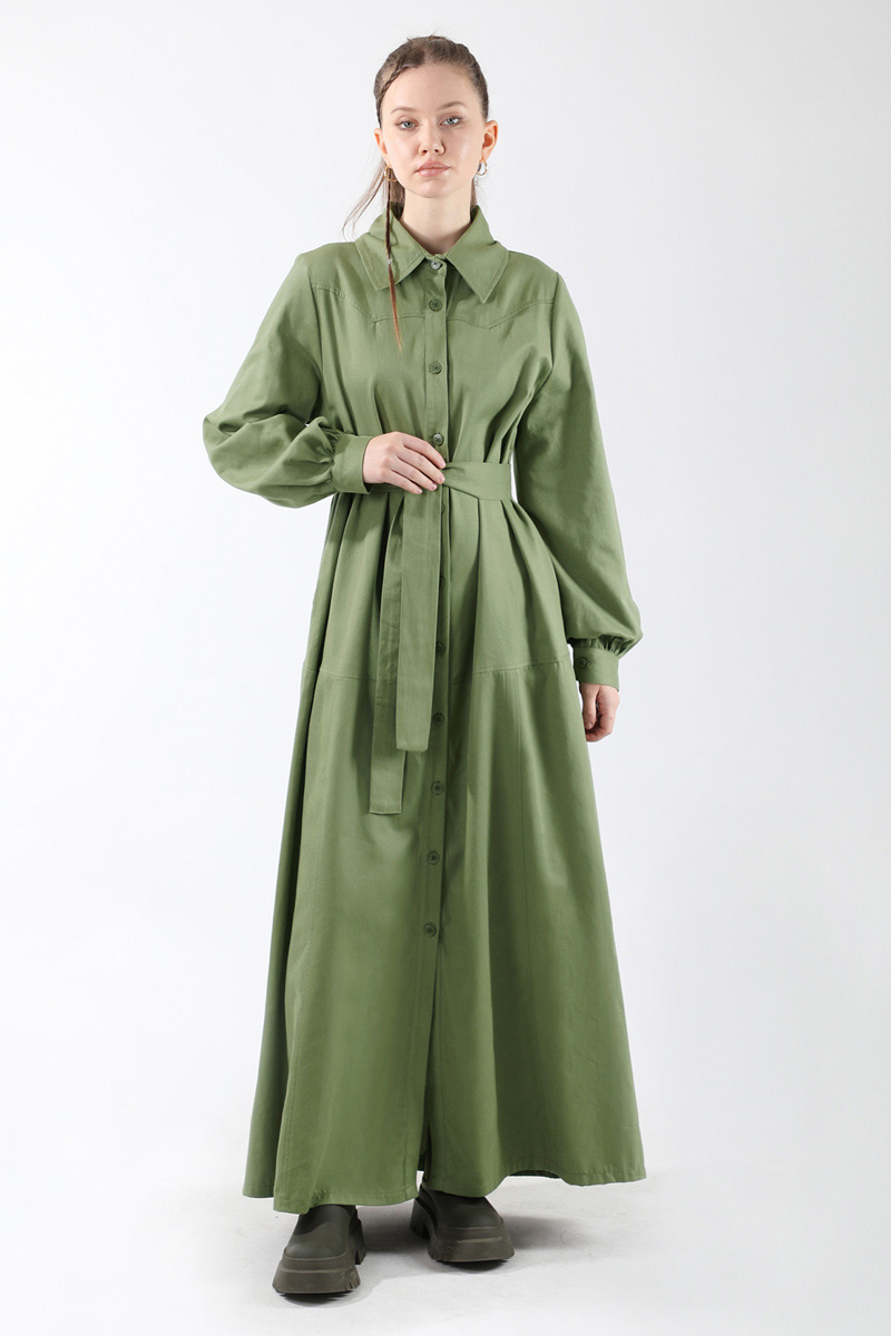 Gömlek Yaka Düğmeli Gabardin Elbise Haki. Gömlek yakalıdır. Manşeti düğmelidir. Ön beden roba detaylıdır. Basen hattından kesik detaylıdır. Ceplidir. Balon kolludur. Kuşaklıdır. Günlük kullanım ve özel günlerinizde tercih edebilirsiniz.
