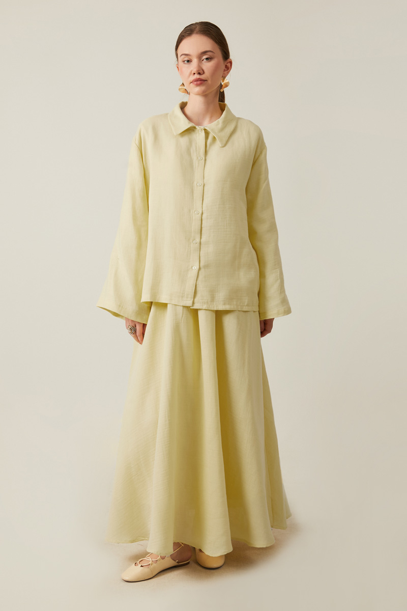Gömlek Yaka Müslin Takım Tereyağı Sarısı