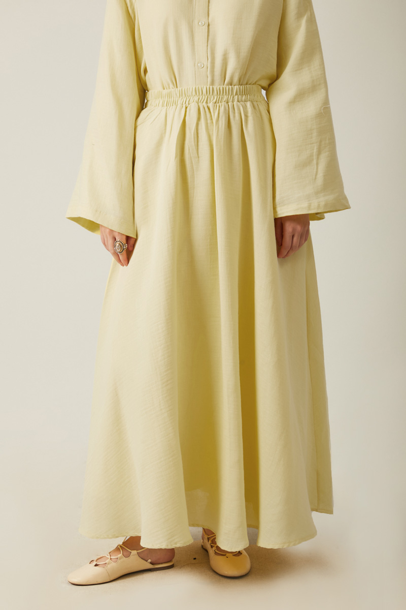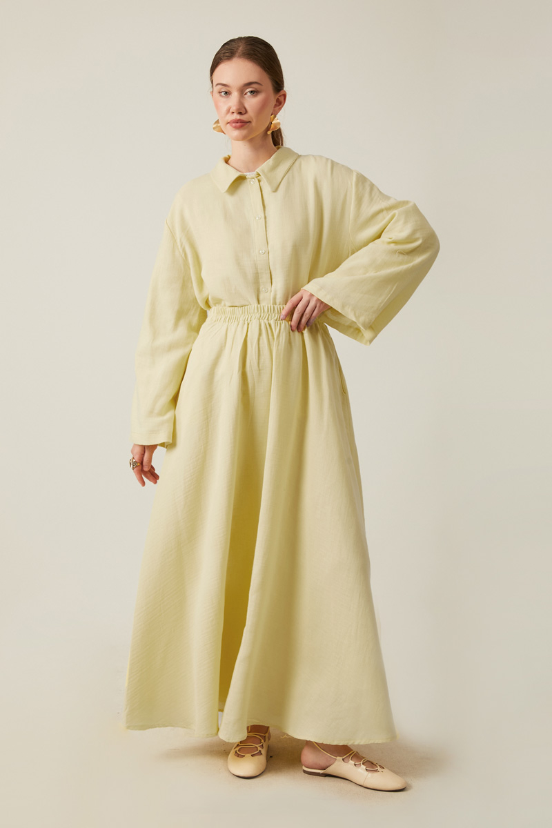 Gömlek Yaka Müslin Takım Tereyağı Sarısı.